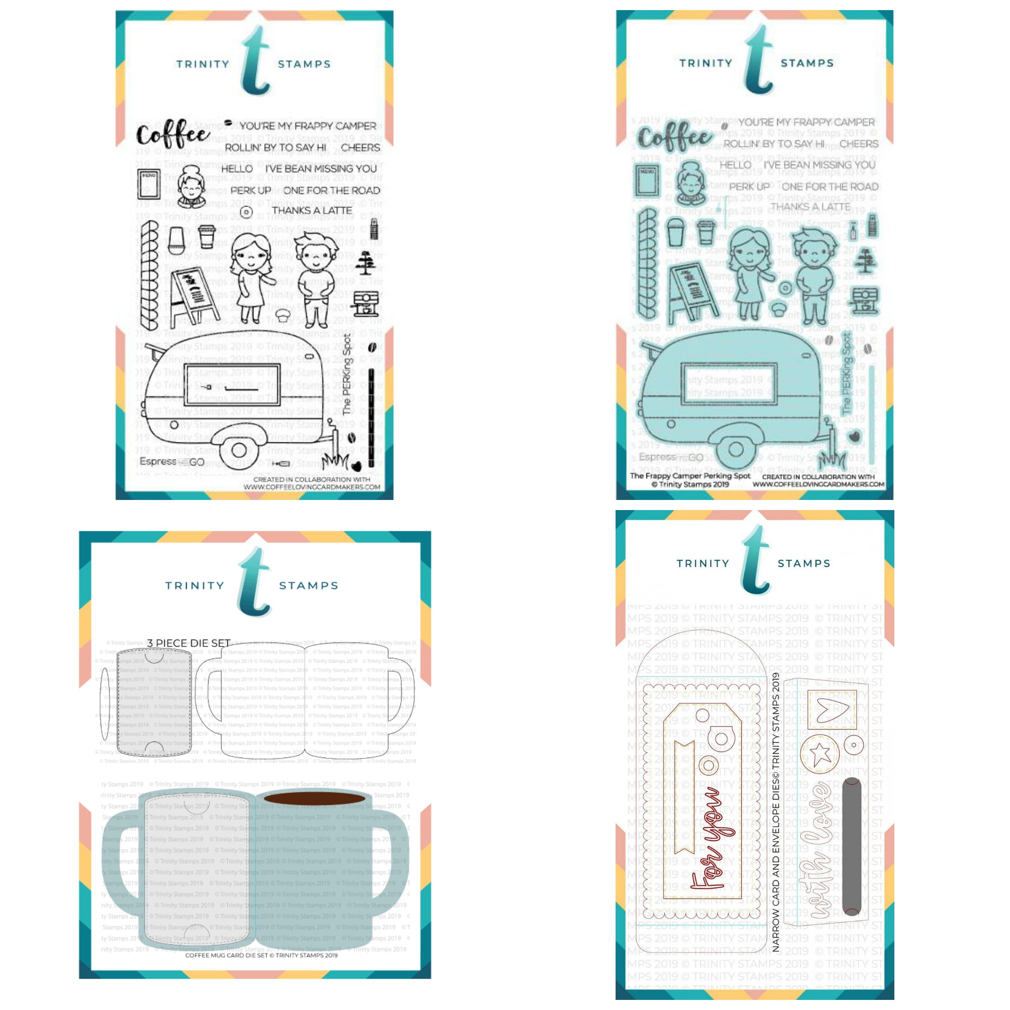 We’re all featuring The Frappy Camper’s PERKing Spot! This is a special Collaboration set with Trinity Stamps + the Coffee Loving Cardmakers Design Teams. The coordinating Die Set is also available.