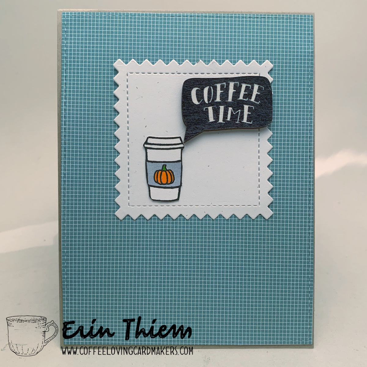 Hello, Erin from Homemade Cards by Erin here to share two pumpkin coffee cards today. Sometimes just a little nod to fall is the perfect addition to your crafty fun. My second card uses the inspiration from the current SugarPea Designs challenge, but instead of pumpkin coffee, I paired a coffee cup with a pumpkin sentiment. Hope these CAS cards inspire you to be creative, you can add pumpkins to your coffee in whatever way you want!