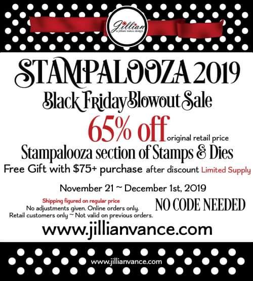 And did you know that Stampalooza is going on over at the A Jillian Vance Design Shop? Check out the Stampalooza section here on the website for some really great deals While Supplies Last!