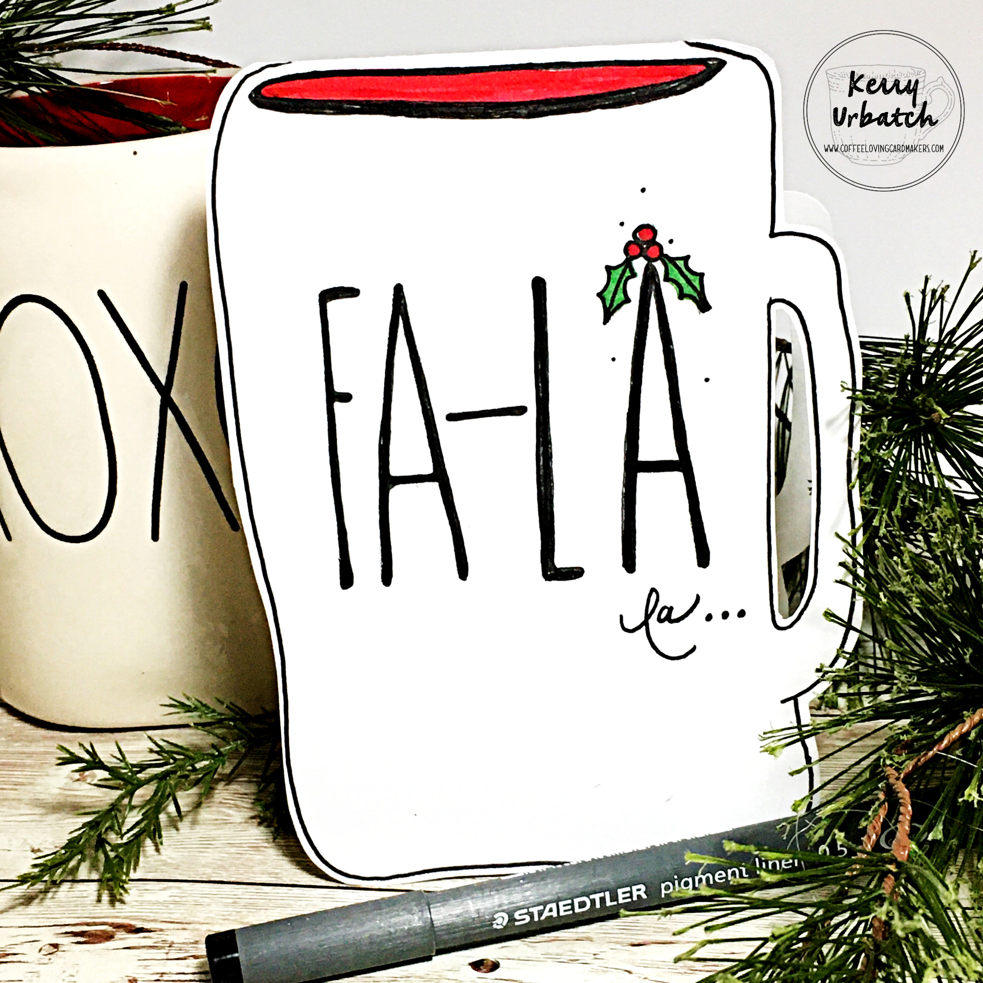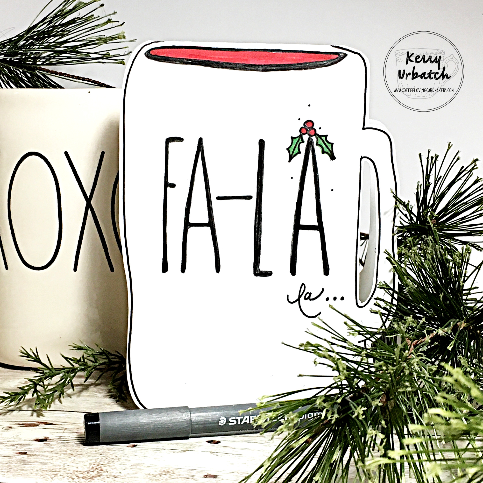 Hello there inky friends! It’s Kerry here and I’m back with another fun Sunday Sip. Yesterday, I braved the stores and headed over to Marshalls to scope out their holiday goods. I always love spending the day over there checking out all the glassware and ceramics, the festive pillows and couch blankets. This year, I noticed quite a ton of the trendy red plaid. I went down the coffee cup/dishware aisle and it was choc full of Rae Dunn cups, platters, canisters and just a TON of DUNN! That’s what inspired this card!