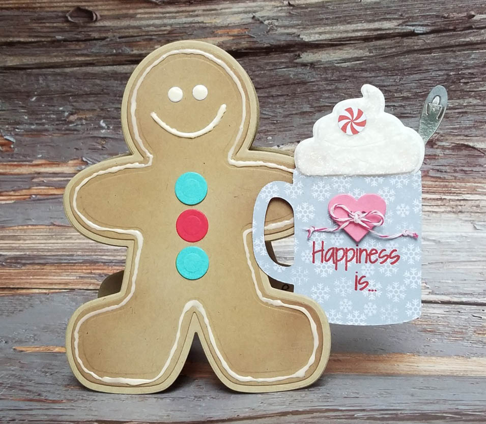 This first one I created to share with you is using the Stamps of Life Gingerbread man fold it and hotchocolate2stamp and dies.  An easy, cute holiday card I’ll be sending out.  The gingerbread man die set comes with dies to cut icing, but I decided to use liquid applique, not heated, for icing instead.