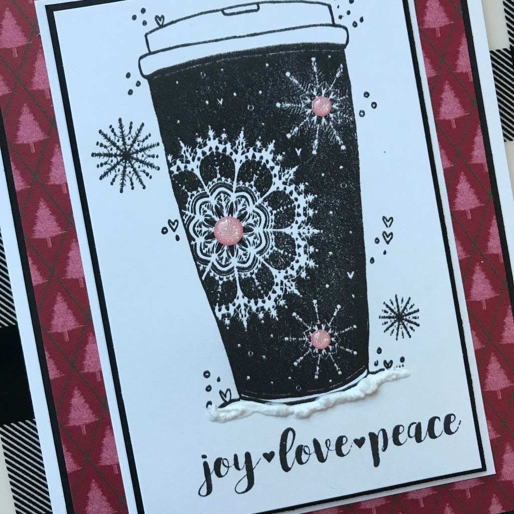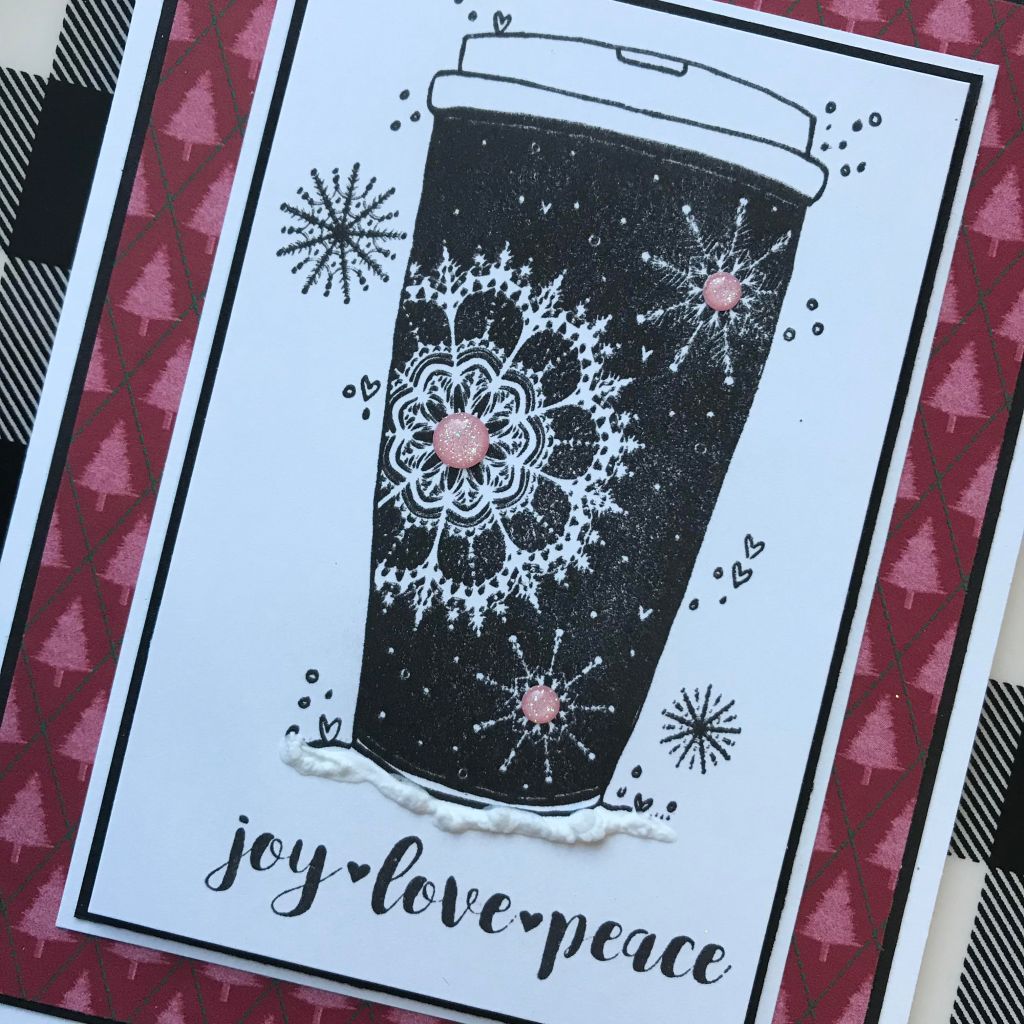 For this pretty Christmas card, I dug out this gorgeous stamp from Unity Stamp Co. It’s one of my all-time favorite coffee stamps 🙂