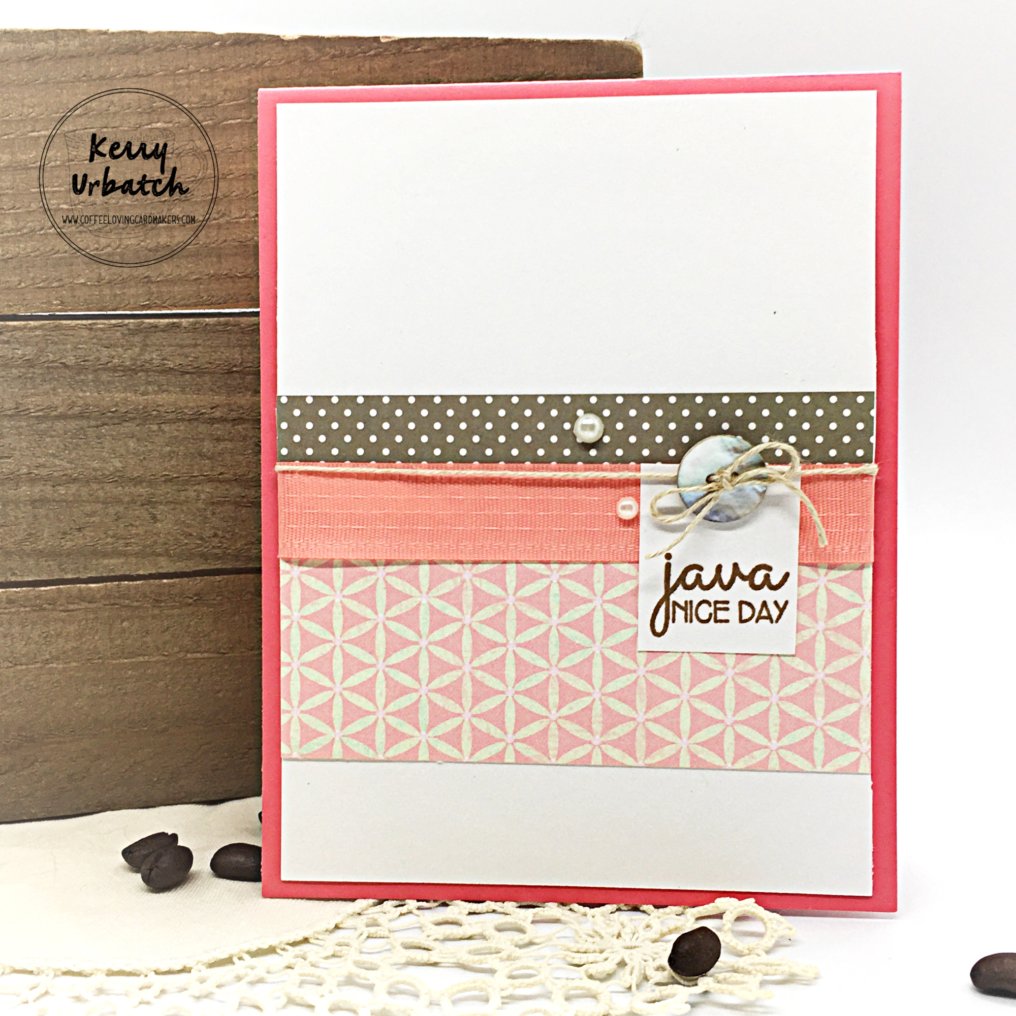 I’ve been playing with the sketch and my little shoebox of scraps and created this sweet little java nice day card featuring the coffee perfect sentiment from Inky Antics.  This sketch lends itself nicely to a CAS style and I have a feeling I’ll be creating several scrappy cards with it this weekend.  Join me?  Just play with the sketch and share your creation in the coffee lovers group on FB HERE and I’ll pick one lucky player to receive a sweet coffee-licious treat from me.  I’ll post the winner in next week’s Sunday Sip post so you have plenty of time to play along.