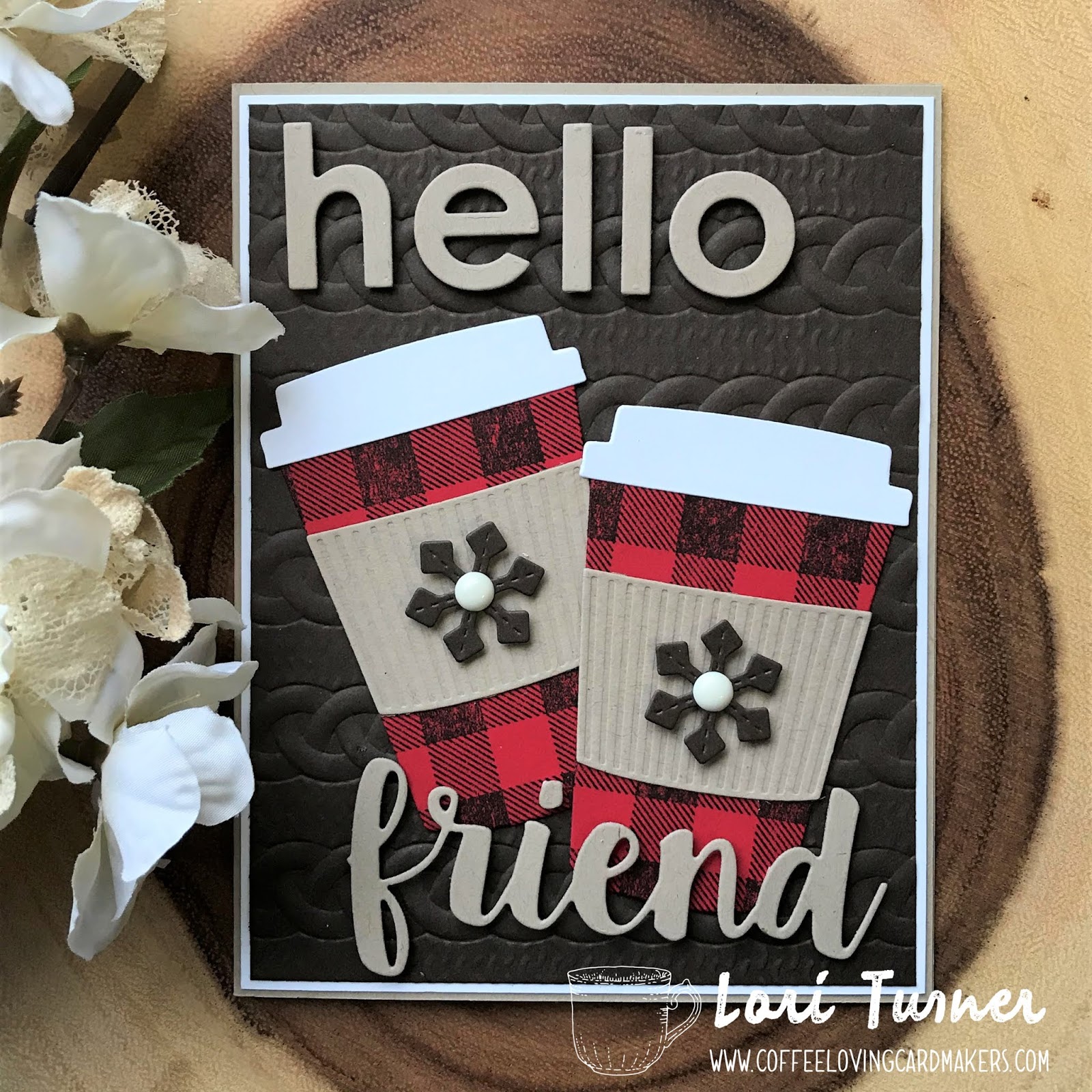 What a fabulous collection of cards! I love the coffee and donut on the skateboard! Grin! The cozy buffalo plaid cup layered over sweater-like embossing speaks to me today. It may be late, but I need hot coffee! Thanks for sharing!