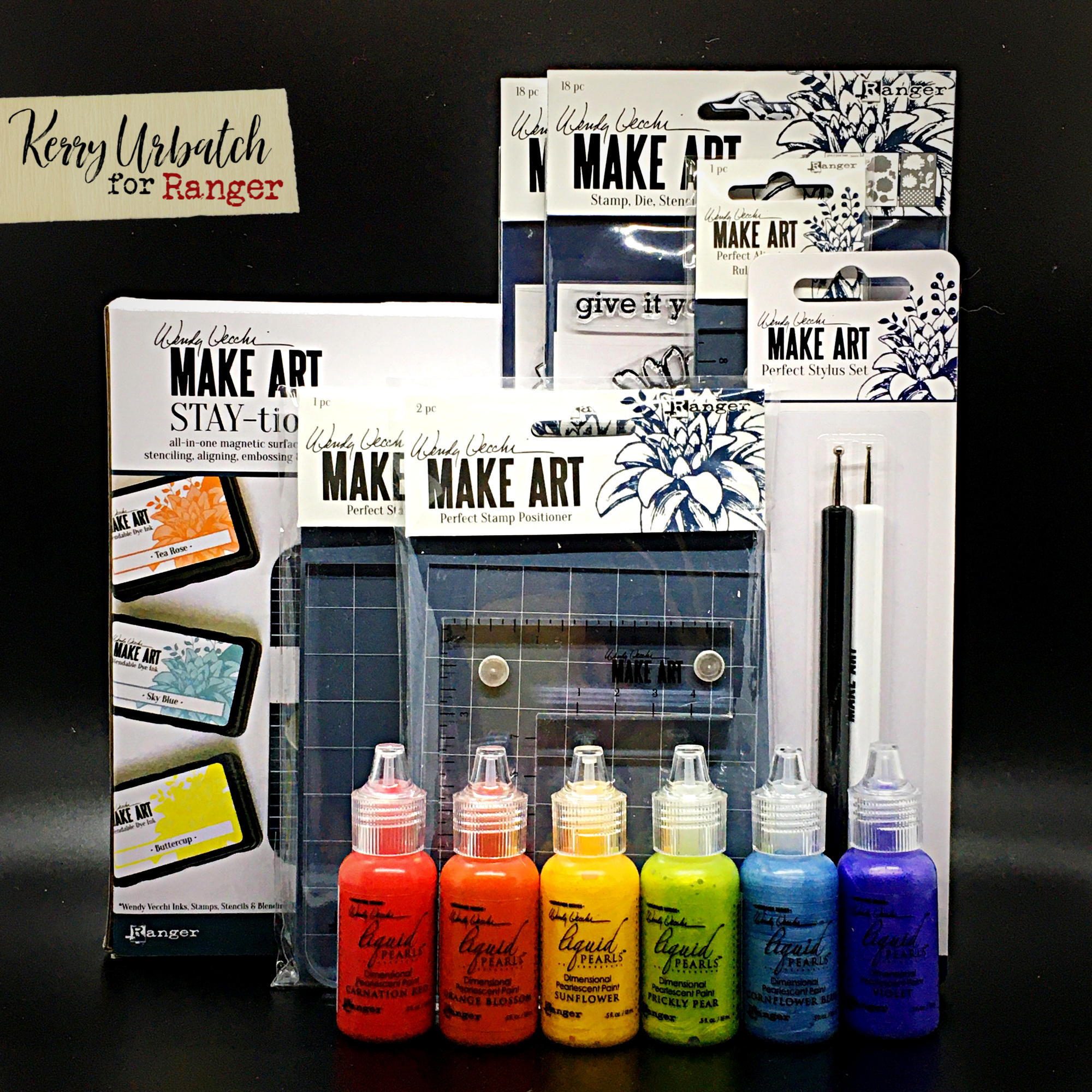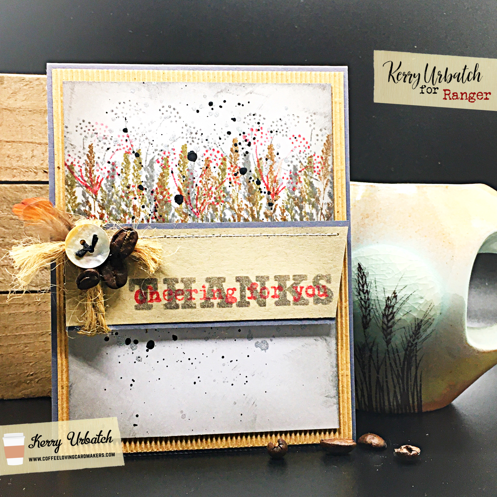 Hello there coffee loving friends! It’s Kerry here and I’m back with another fun Sunday Sip! Today, I’m sharing a masculine card featuring the yummy new products from Ranger-and the Wendy Vecchi Make Art line. These products will be available March 31 but I’m sharing a little sneaky-peek courtesy of Ranger. WOOP!