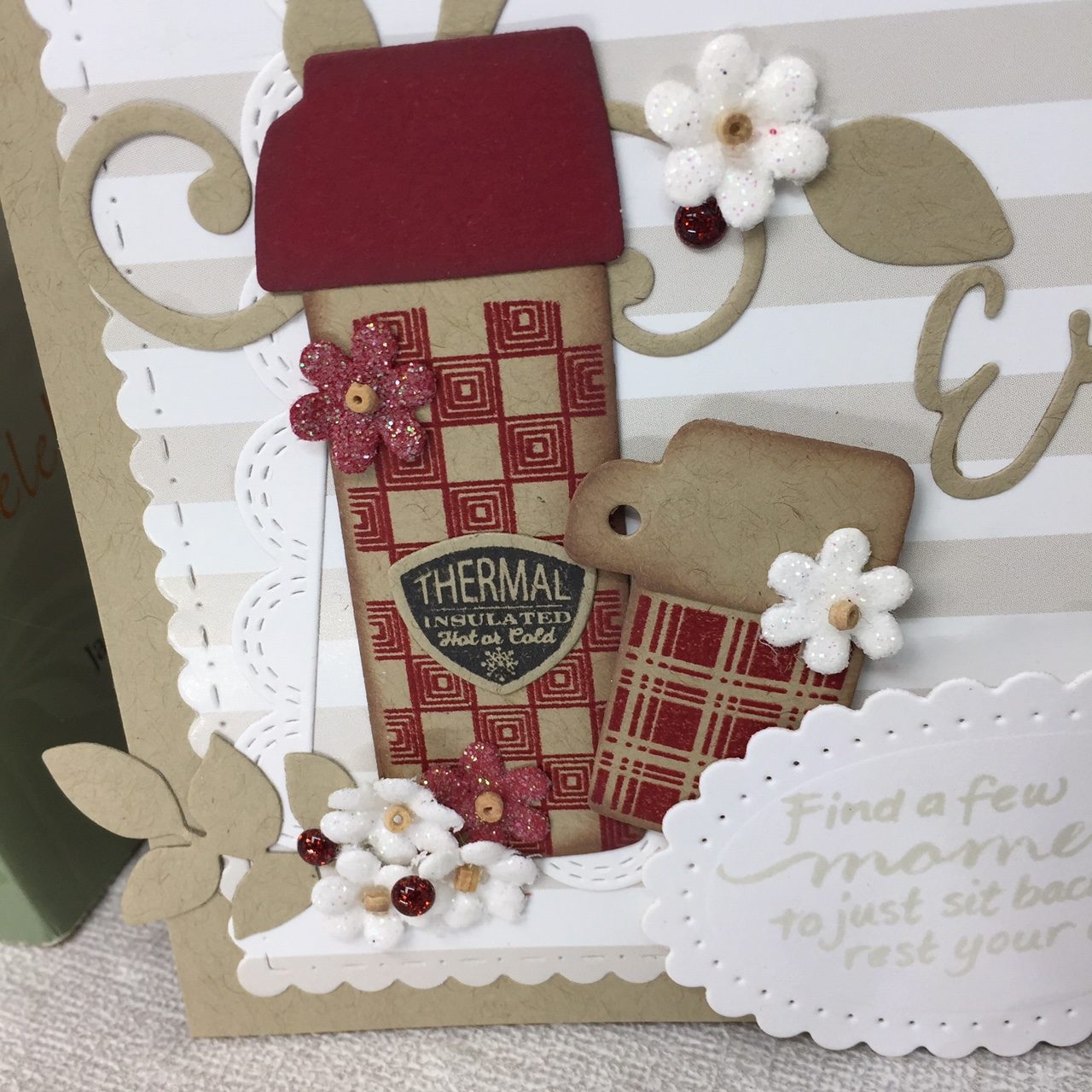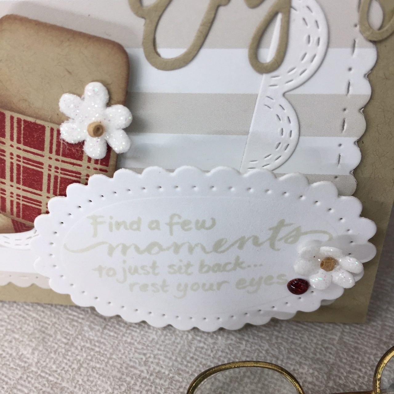 I love this sentiment! I had stamped it out quite a while ago and even added adhesive to it. I didn’t use it for that project so it’s been stuck to my shelf every since. It was perfect for this card! So glad I saved it… it was just too pretty to toss! (Of course now I can’t remember what stamp set it’s from…lol).