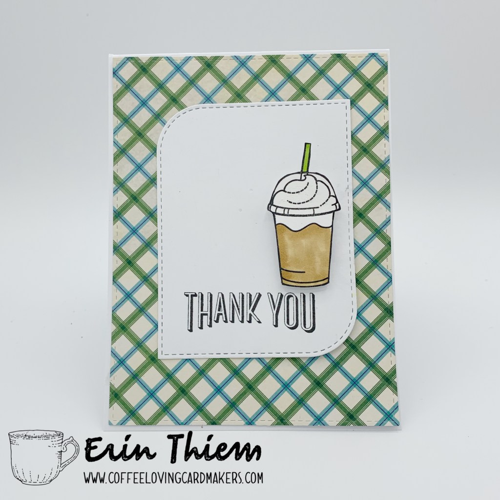 Hello, Erin here, with some distraction crafty therapy for you.  I don’t know about you, but I didn’t celebrate St. Patrick’s Day this week, so it was nice to add a little pop of green to my coffee card to share.  And trying to channel gratitude at the moment, so one can never go wrong with a thank you card.  I paired a coffee cup from The Greeting Farm with a sentiment from Papertrey Ink, die from MFT and some fabulous paper from my not so small stash.