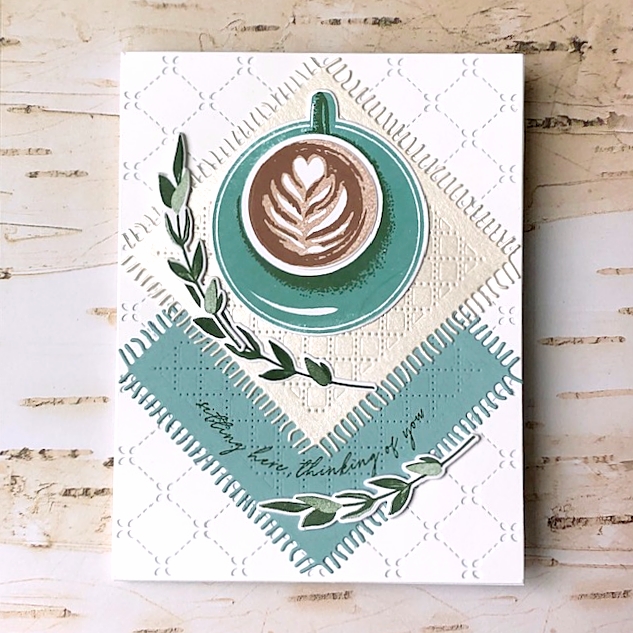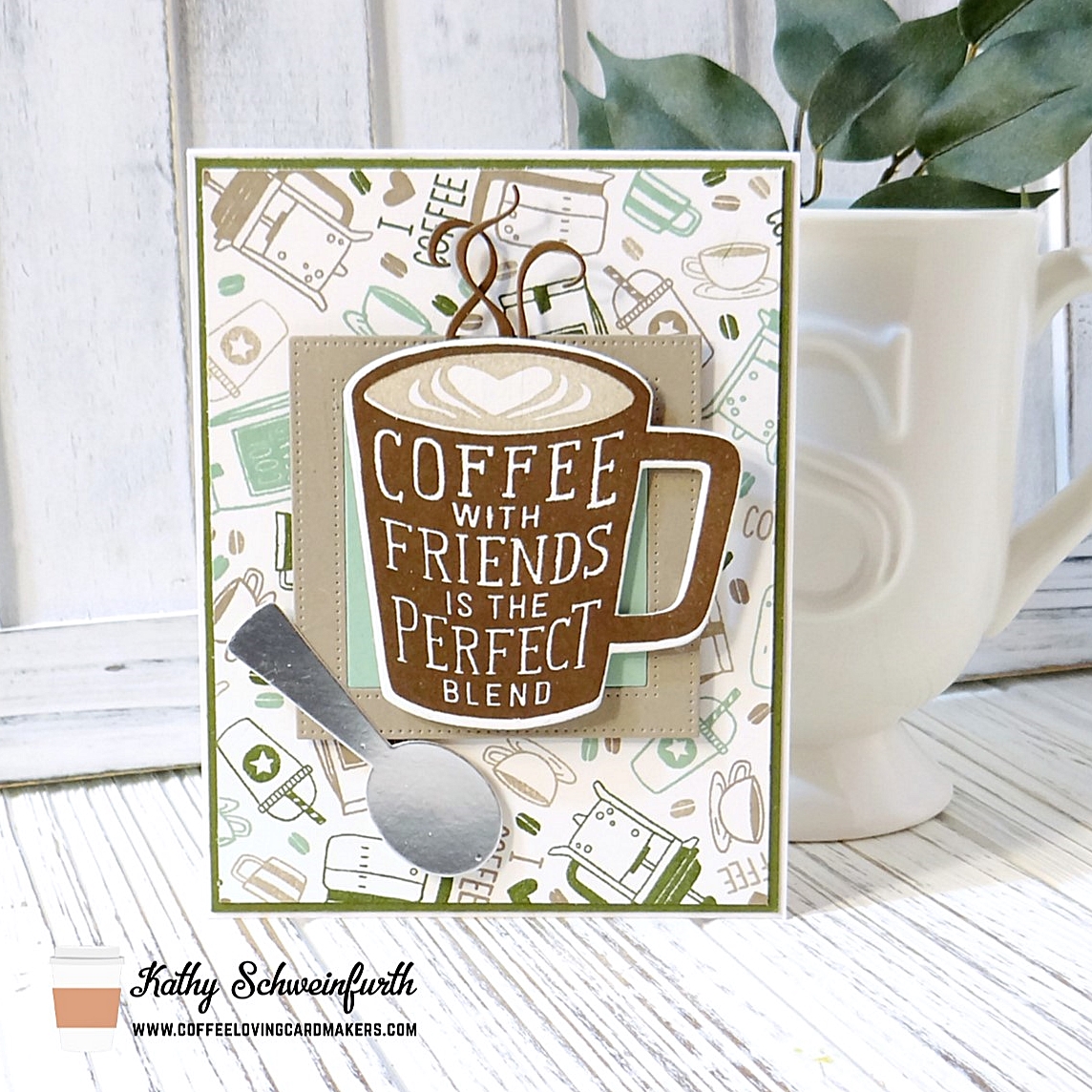 Hi! My name is Mary Reiner and I live in Columbus, Ohio. I’m married and have two children in their twenties. By day, I am a test coordinator for a local school district. Paper crafting has been part of my life for over 25 years. I started making scrapbooks when my children were younger; but eventually card making took over. I’ve been making cards for about 10 years. After a stressful day, I look forward to my crafting time. Just give me some chocolate and some pretty paper and I’m good! Kathy and I met about 25 years ago when we both worked for Limited Too. She made awesome projects back then as well! We reconnected several years ago at a paper crafting garage sale and now we get to see each other pretty often. I’m so happy she asked me to be her “coffee date.”