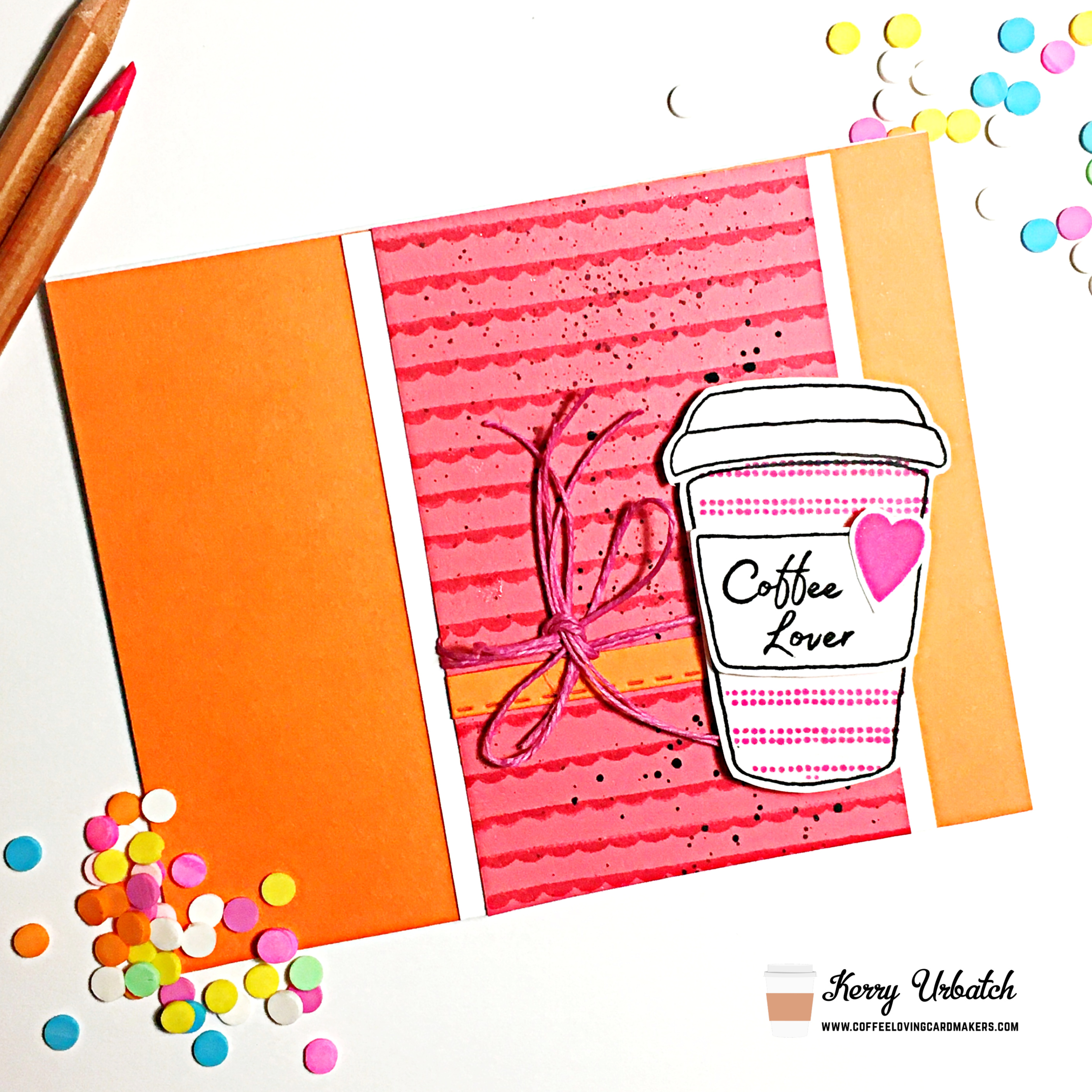 Hello there coffee loving crafty peeps! It’s Kerry here and I’m back with another fun Sunday Sip. I thought I’d bring out a little zing of color to my card today by creating this fun little orange and pink number. I picked up this cute stamp set a few weeks ago (who know…I have lost all sense of time) and I thought it would be fun to play with it today.