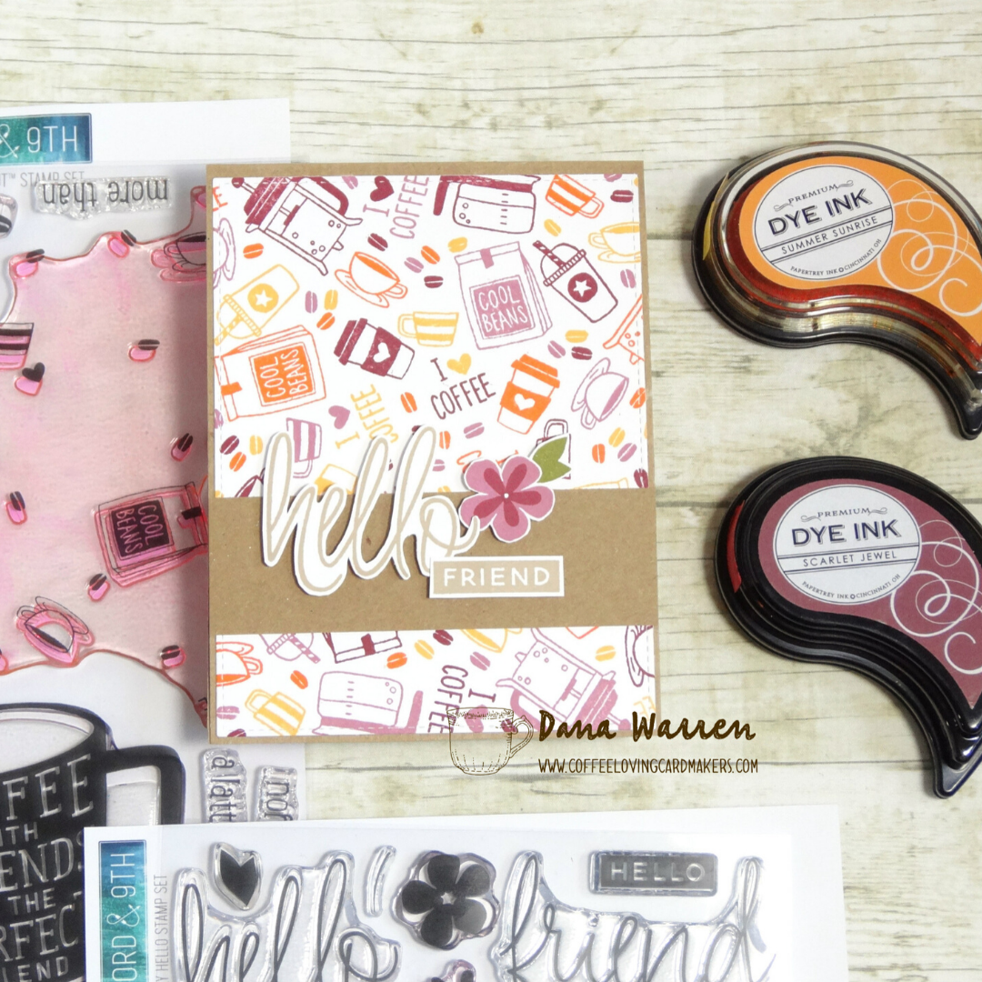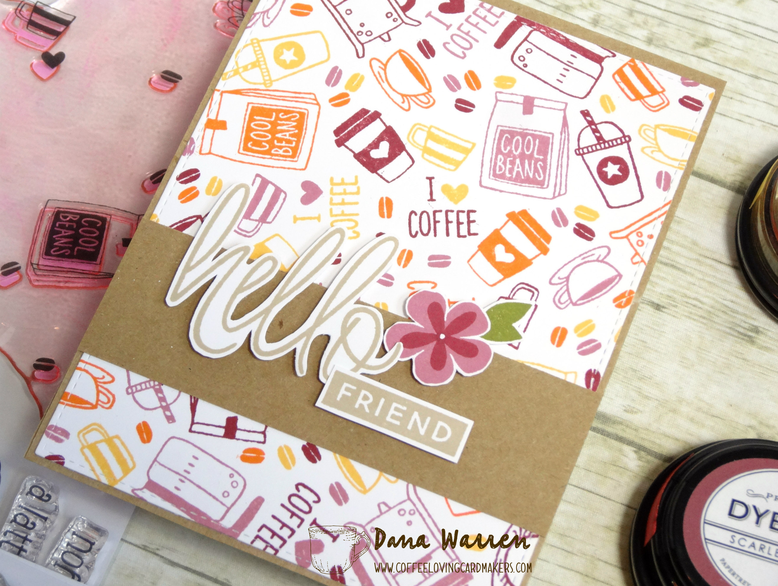 Then I used Concord & 9th Friendly Hello stamp set, stamping the Hello and Friend with Papertry Ink Classic Kraft ink. I fussy cut the hello out.