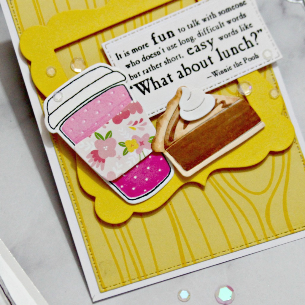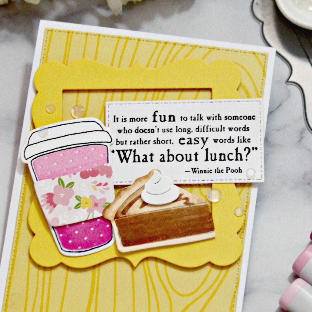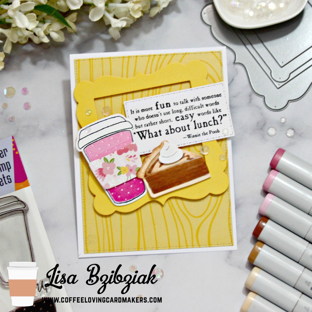 I came across that adorable sentiment in my stash and decided I could easily use it to create a coffee themed card… if you were going to lunch with a friend… or if I was… there would probably be coffee involved.. and pretty sure if pie was an option we’d have that too!