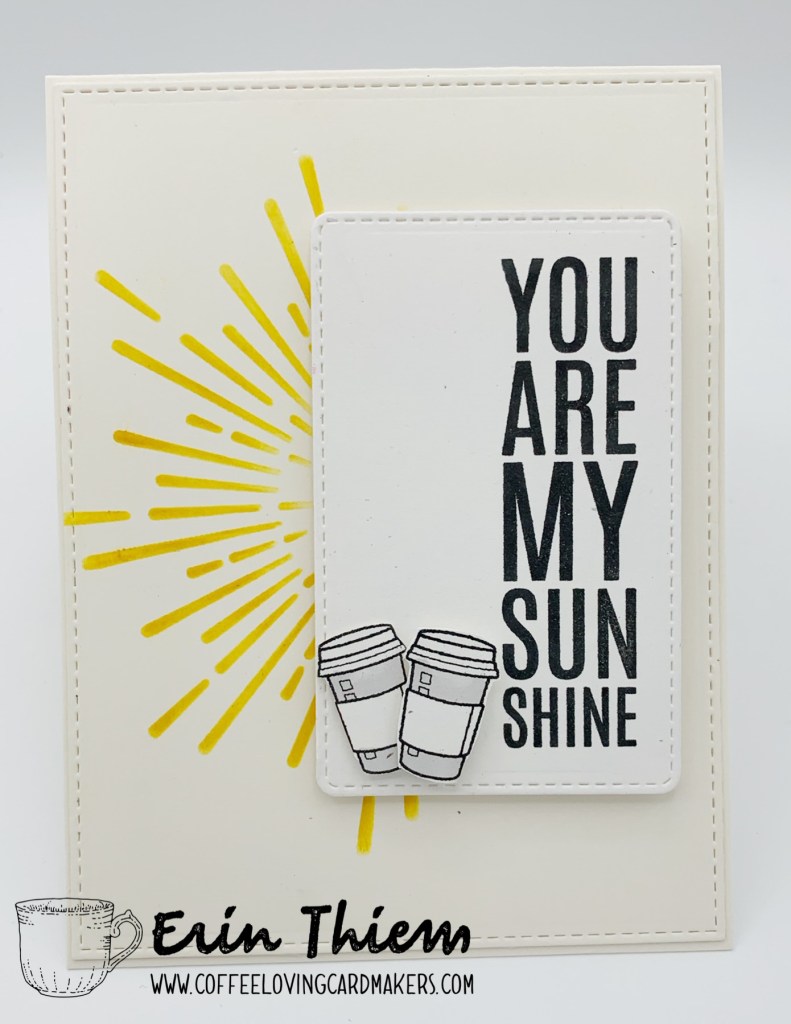 Hello, Erin here for another Saturday edition of Creative Chaos. I have been doing a slightly better job of cleaning my craft desk these days (no promises, I have years of bad habits). Today’s card pairs a Simon Says Believe in You sentiment with 2 little Hero Arts coffee mugs and a Tim Holtz stencil. Hope everyone has some fun weekend plans, my day will be fueled by coffee.