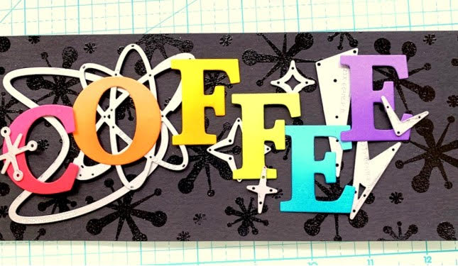 I used Tim Holtz’s Atomic Elements dies, as well as letter dies from Momenta and stamps from CAS-ual Fridays Exclamations, which I think is now unavailable.