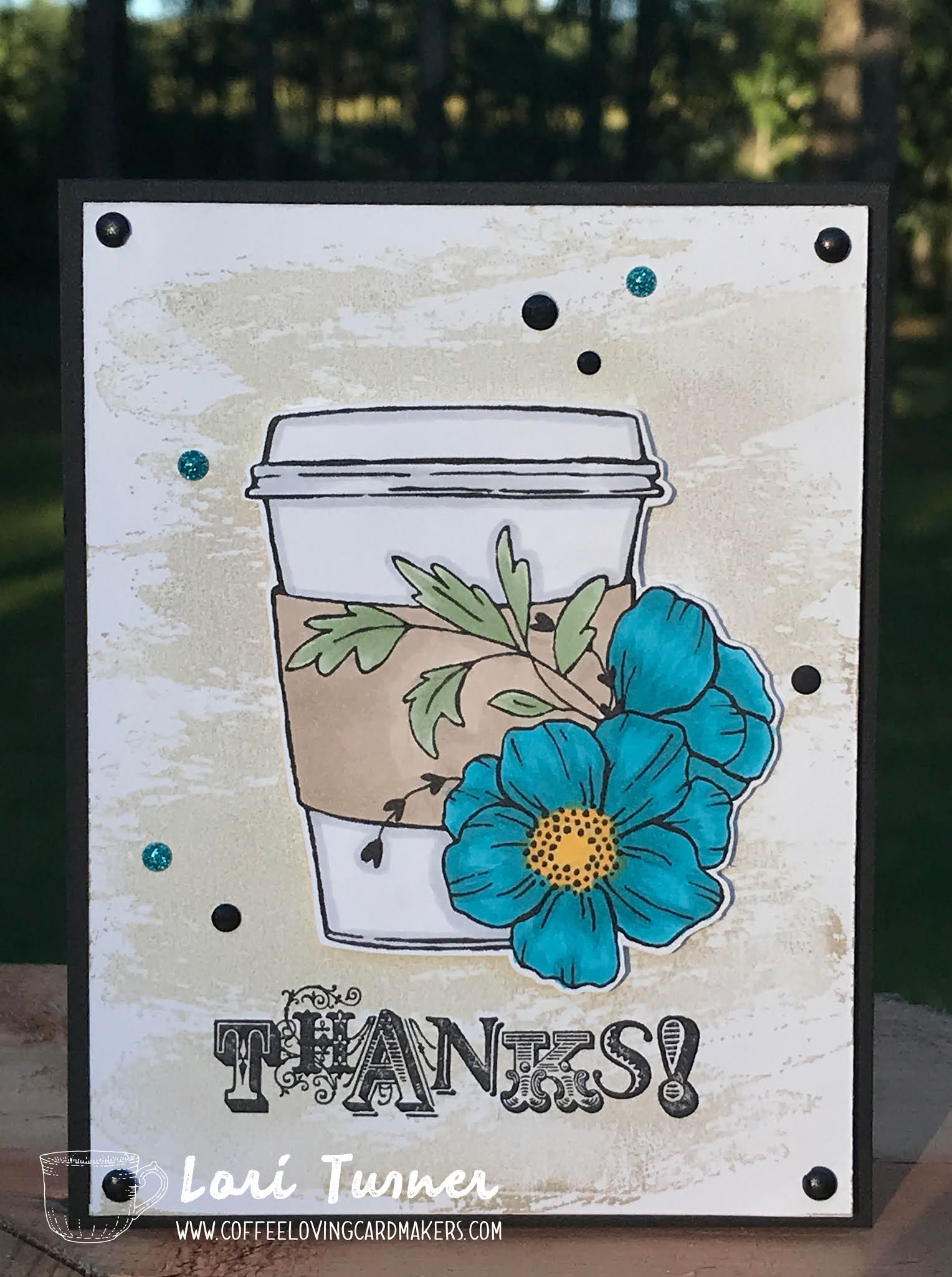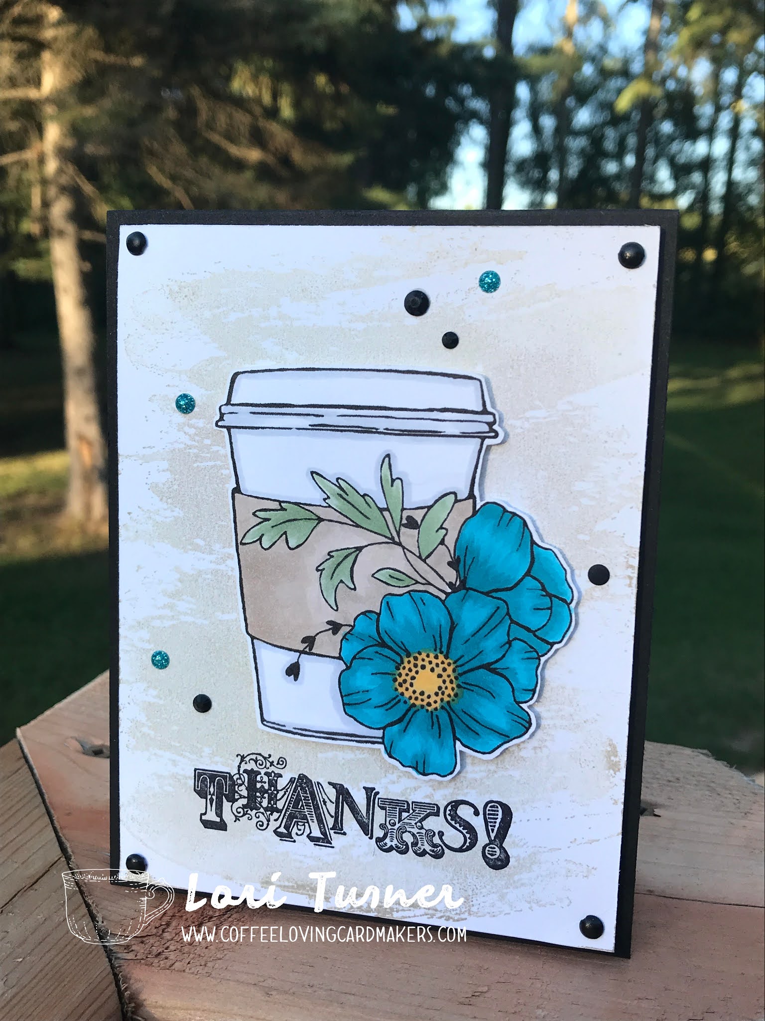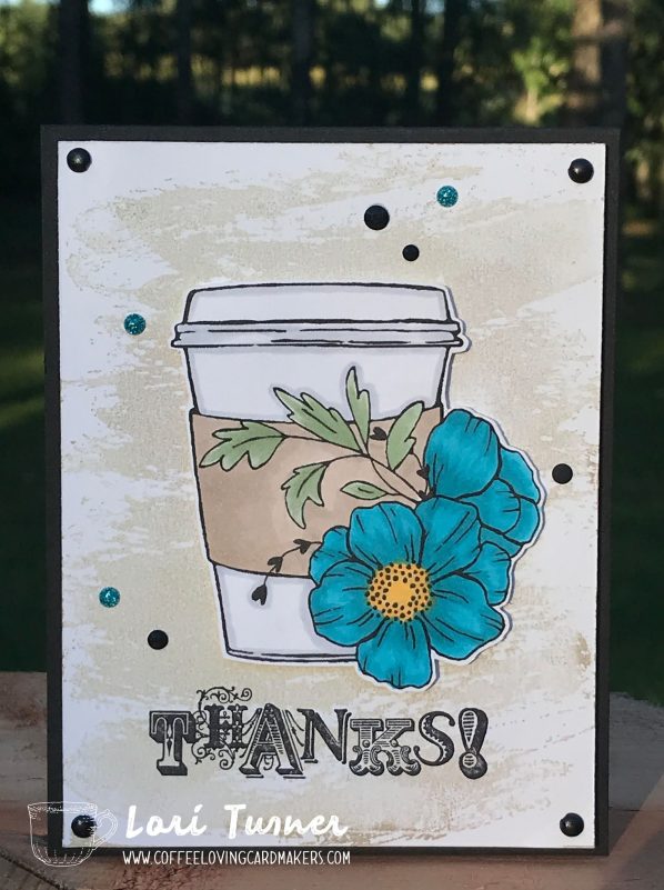 Today I am showing off this beauty from Graciellie Design called Coffee and Love! I had an extra image printed in my “extras” container so I quickly colored that up while my daughter was here and got the card done while we visited 🙂 I love these images – flowers and coffee, what’s not to love?! 🙂