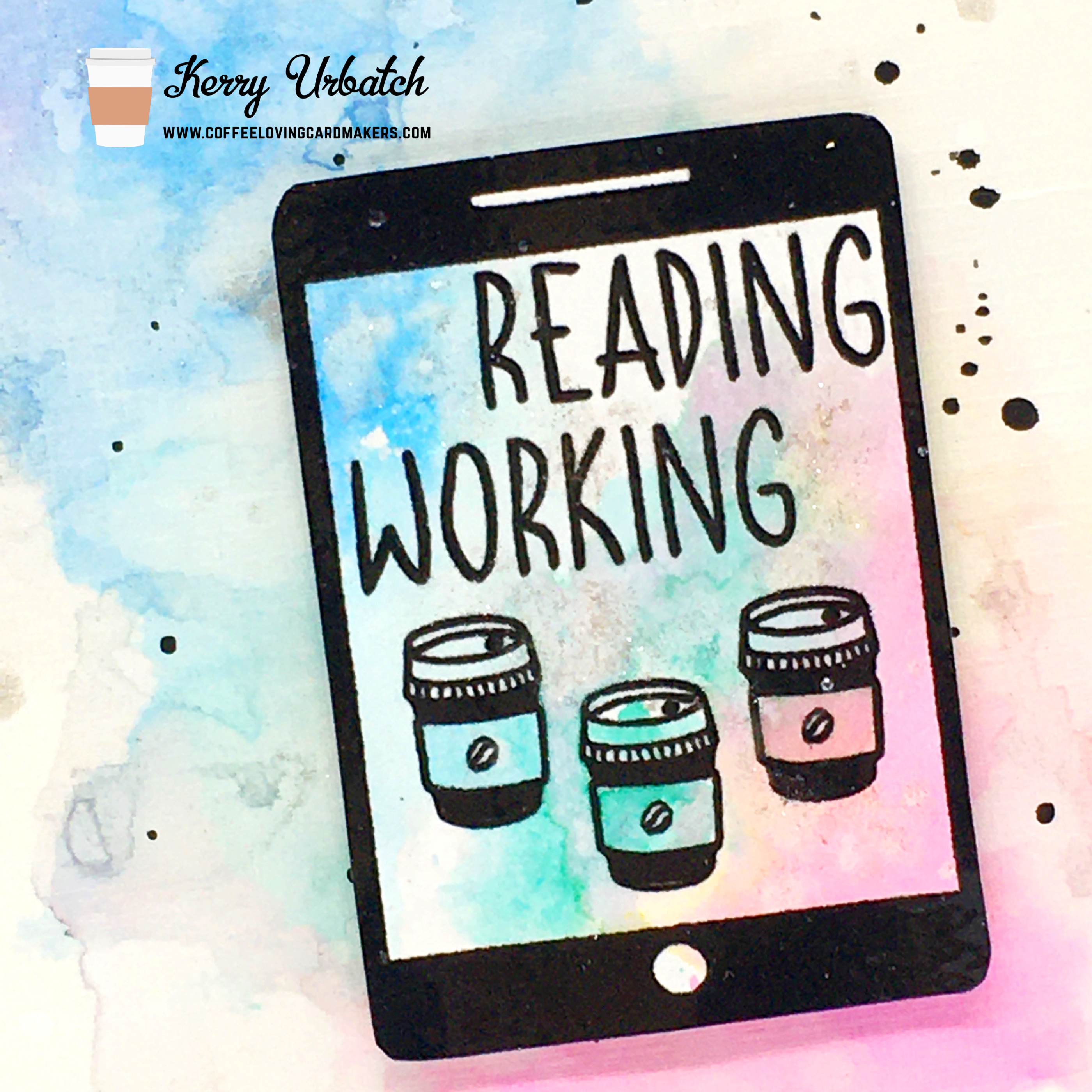 So for my first card, I used the fun Tablet E-Reader set. I love this set because it contains two different coffee images and some fun words that fit perfectly on the tablet screen. While I don’t do ZOOM, I can relate totally to the all consuming hold that virtual classrooms have on teachers right now. So yes, I’m READING, WORKING, BBCUing on repeat all week long. I’m also drinking my share of coffee for this year!