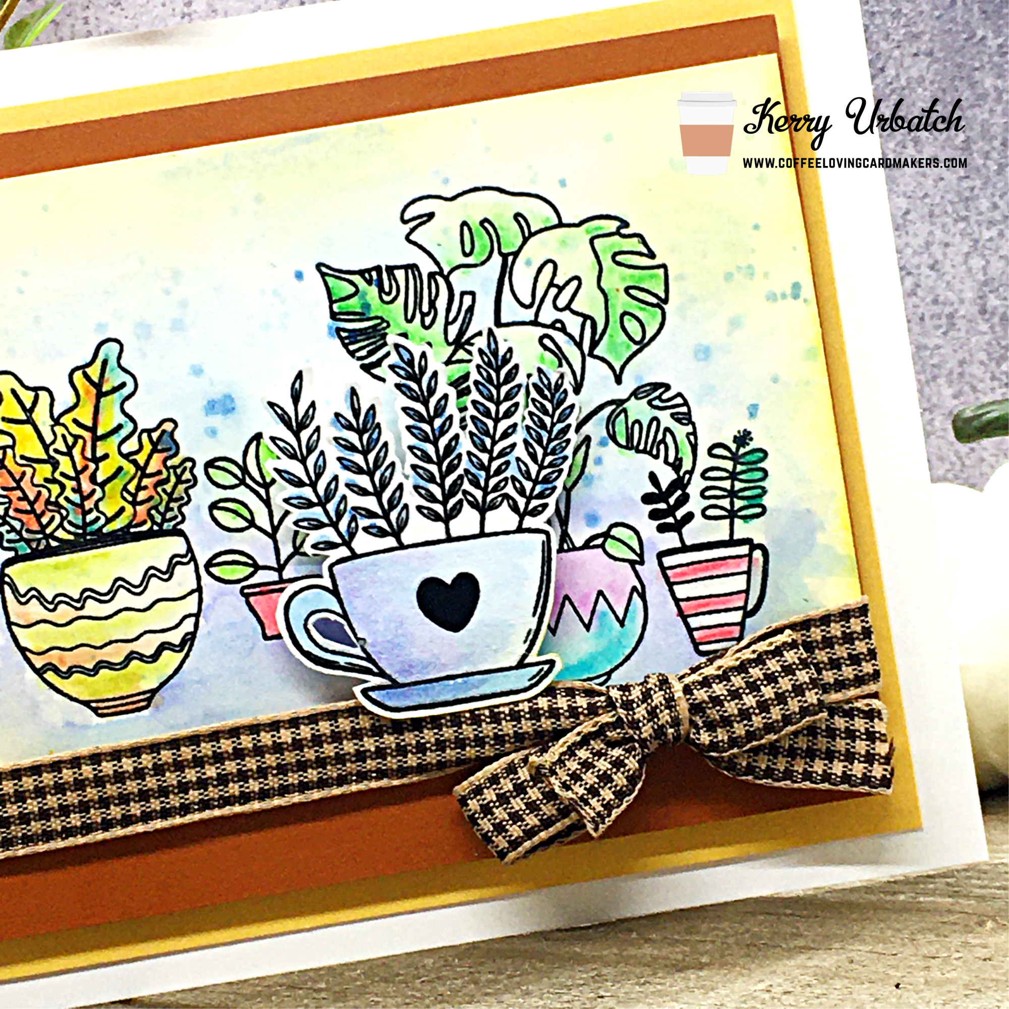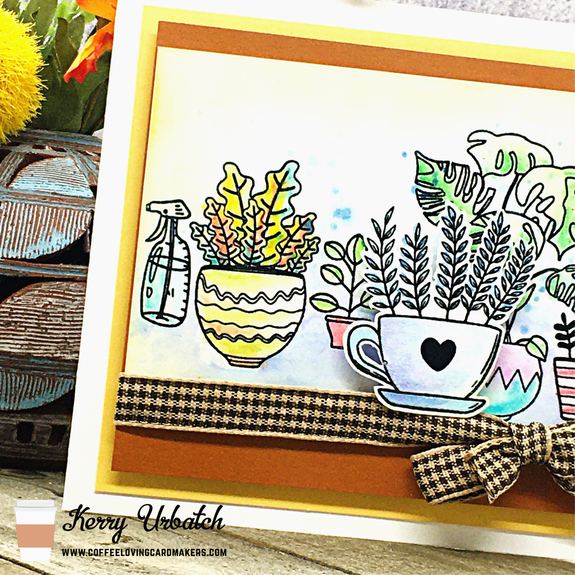 To create my card, I used the fun Plant Lady Stamp Set because well, I love coffee mugs and love people who can keep plants alive! Yeah, that’s not me. I try, but I’m not that successful! SOOO….I can stamp them and color them up real good instead. HEE HEE.
