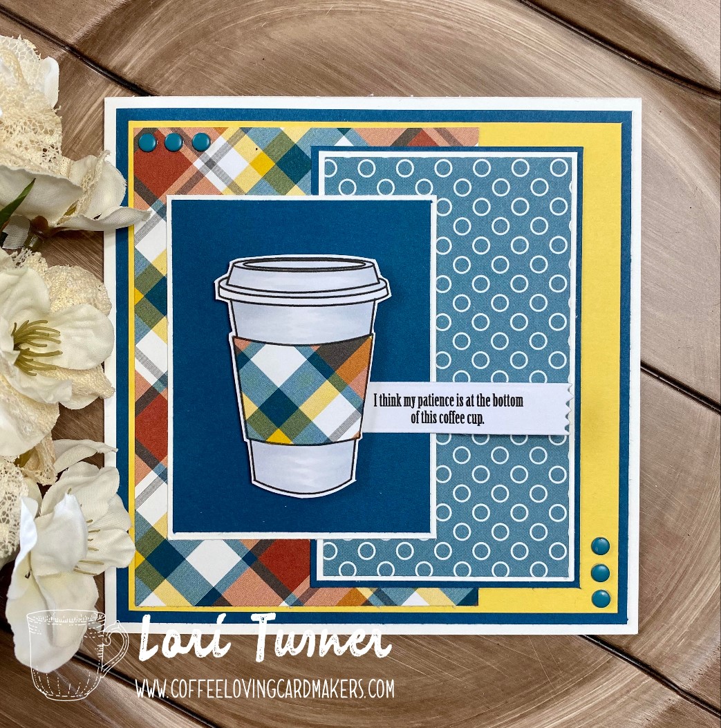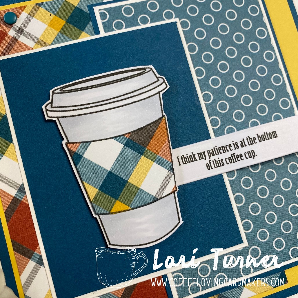I started by printing them out on Xpress It copic paper and colored up the cup and fussy cut it out. I then printed the set again with the plaid paper to create the sleeve for the mug 😉 So fun! I love the sentiments in this set – so sassy! LOL
