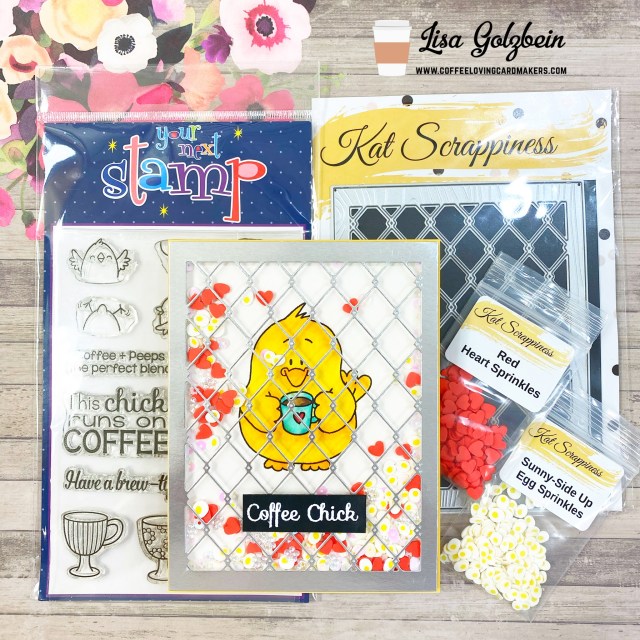 My shaker card uses the Coffee Chick digital stamp from Gerda Steiner and I will be sharing some of the other digital stamps I acquired thanks to my gift certificate from the Coffee Lovers hop.