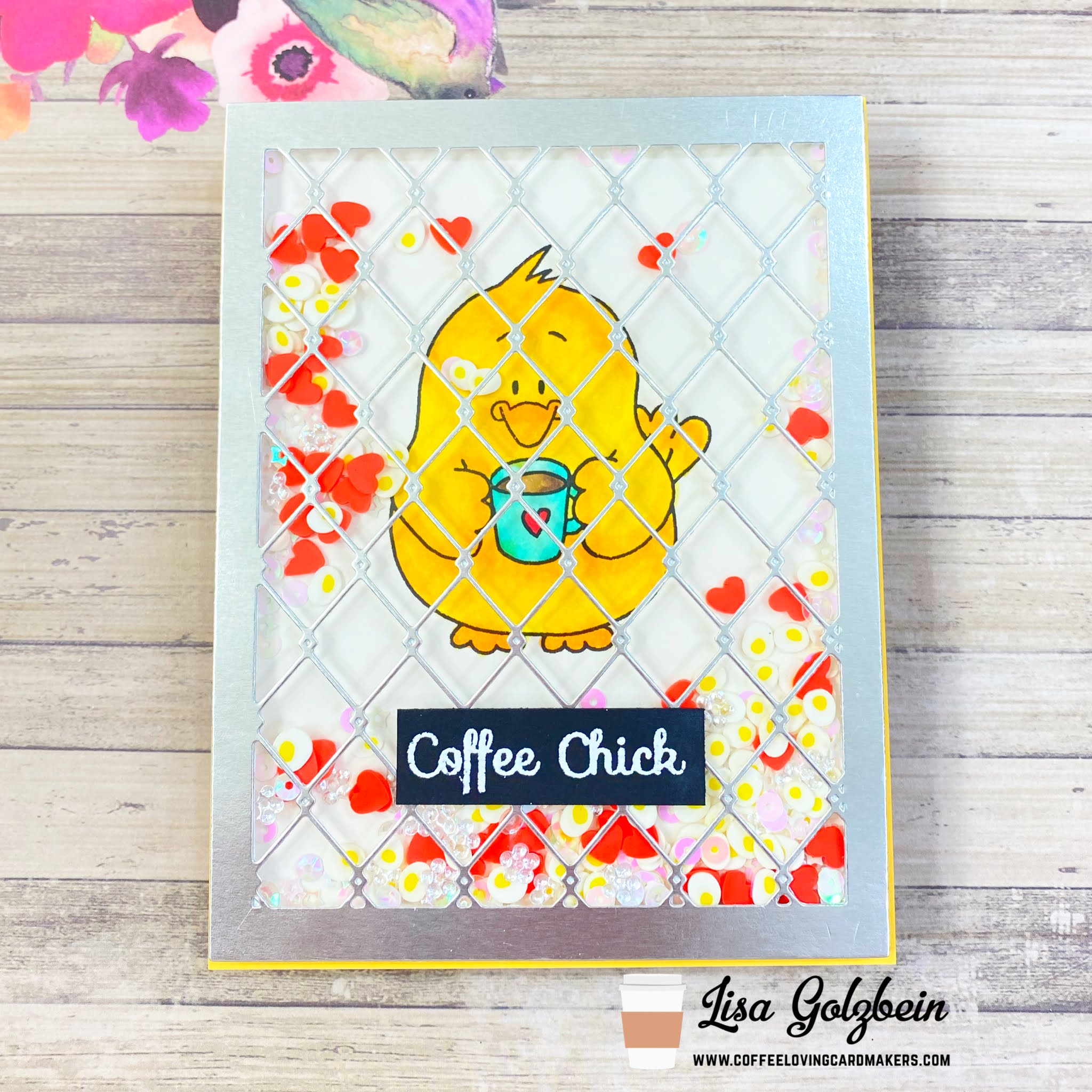 My shaker card uses the Coffee Chick digital stamp from Gerda Steiner and I will be sharing some of the other digital stamps I acquired thanks to my gift certificate from the Coffee Lovers hop.