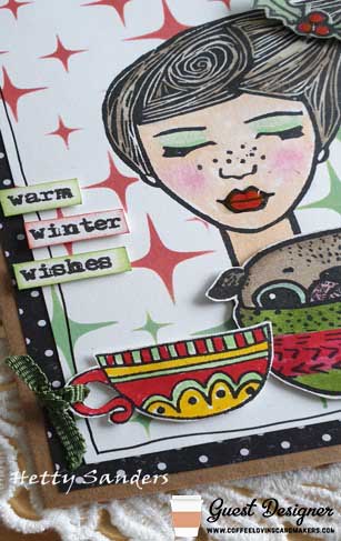 The sentiment and the holly are from the Christmas Character set. On berries as wel as the lips of the girl tere are a few drops of glossy accent to make it more real.