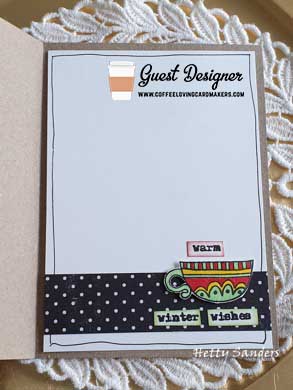 Hetty here with new coffee/ inspiration. This card can be both! Two years ago I won a prize in the coffee blog hop from Funky Fossil Designs and ever since I ordered I am hooked!