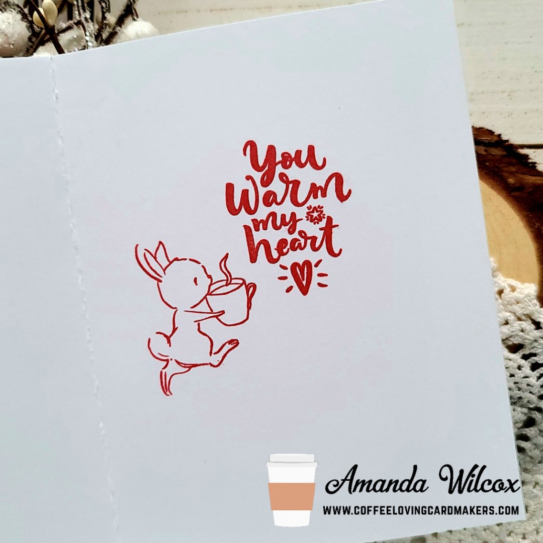 AND THEN, on a whim, I decided to stamp on the inside of my card today too. I never do this but I have a couple of crafty friends who do and I always think it’s super cute. So I grabbed a bunny that I didn’t use on the front and another sentiment from Make Tea and stamped it in red ink to coordinate with the colors on the front.
