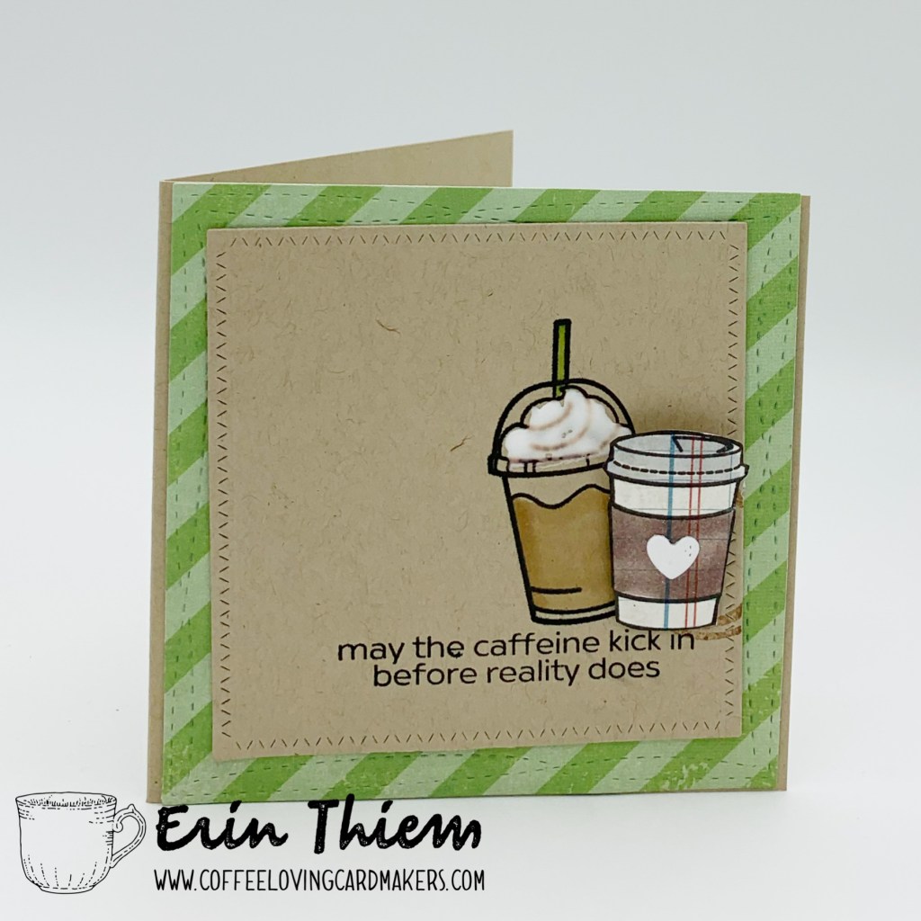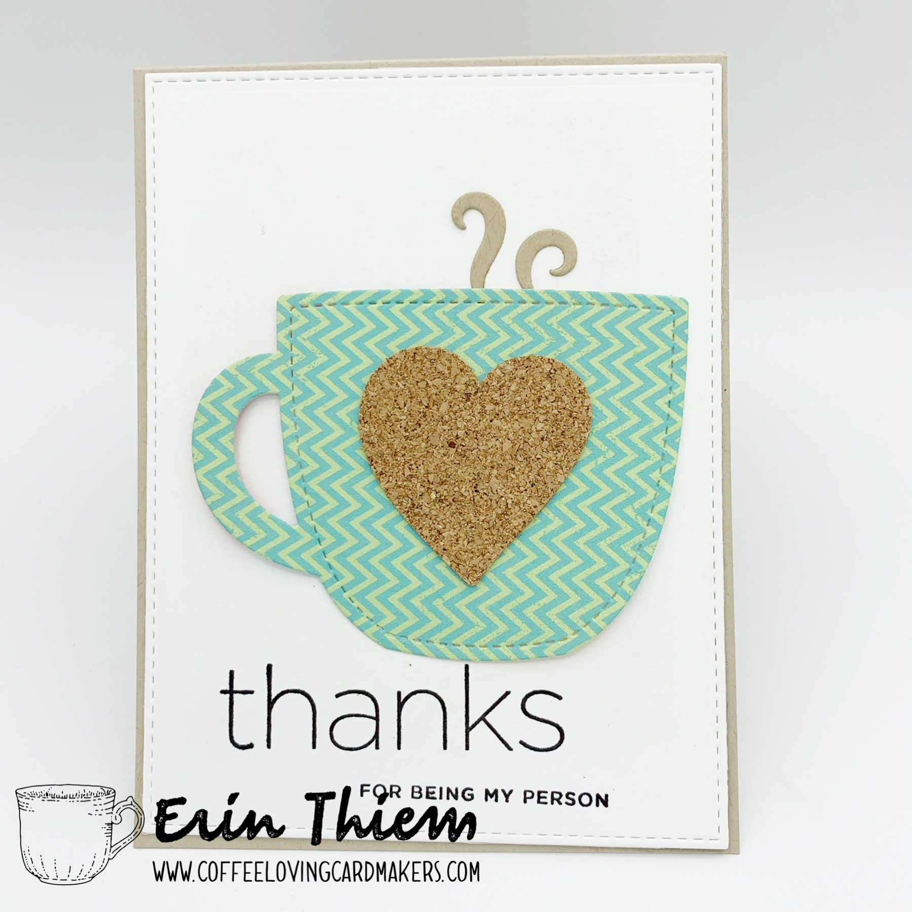 Hello, Erin here, with another edition of Creative Chaos and today’s post brings you two CAS cards with 2 great sentiments.  My first card pairs The Greeting Farm coffee cups with a sentiment from Miss Ink Stamps, dies by MFT and a piece of paper from my stash.  My second card uses the Lawn Fawn mug (as a person who owns a motel called the Outside Inn), I decided I “needed” a coffee mug called Outside In Stitched Mug.  I added a sentiment from Simon Says and a cork heart with a Hero Arts die.  Hope your Saturday includes some crafty time…  can’t wait to see what coffee sentiments you include.