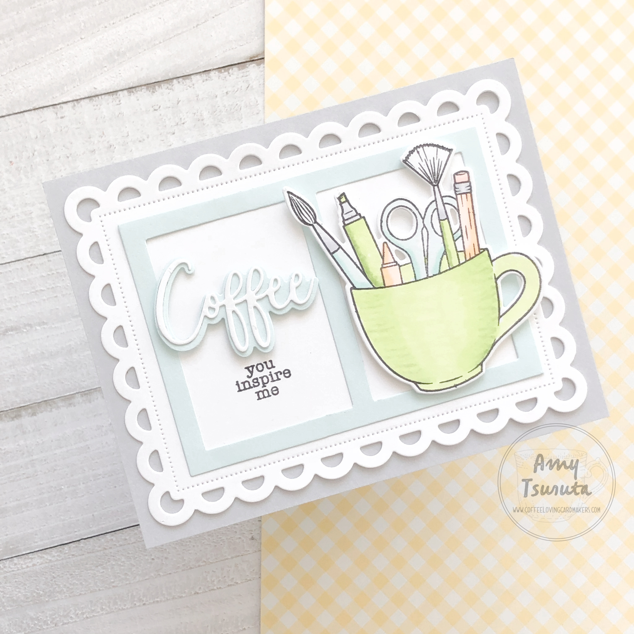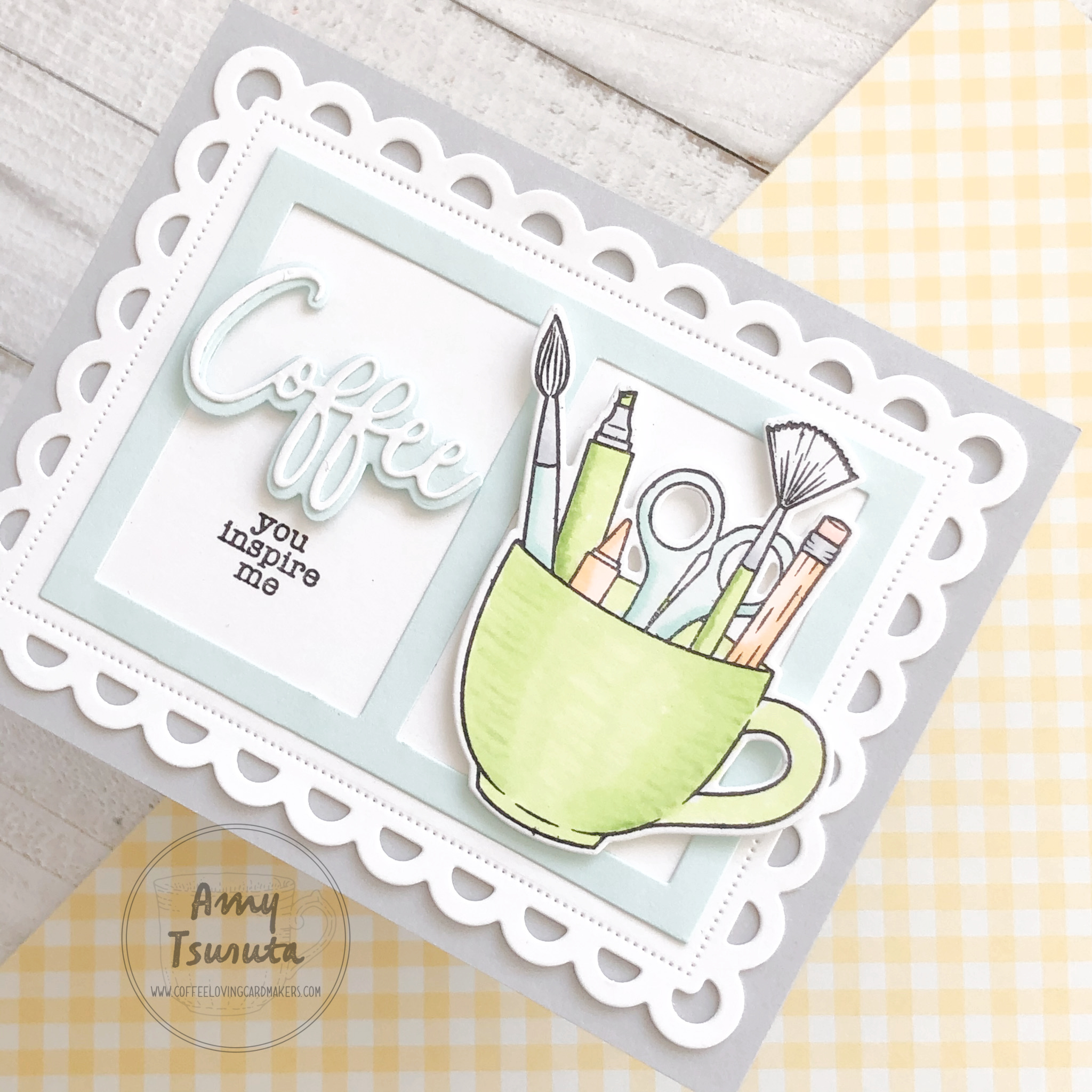 Hello! Do you have a large coffee mug collection? I do! I collect the Starbucks – You Are Here mugs whenever I travel. Over the many years that I’ve been doing this, it has given me a cupboard of mugs. I love them! When I see other mugs that I just have to have, I’ll pick them up to use as a holder of sorts. More on that in a smidge, let’s chat about my card.
