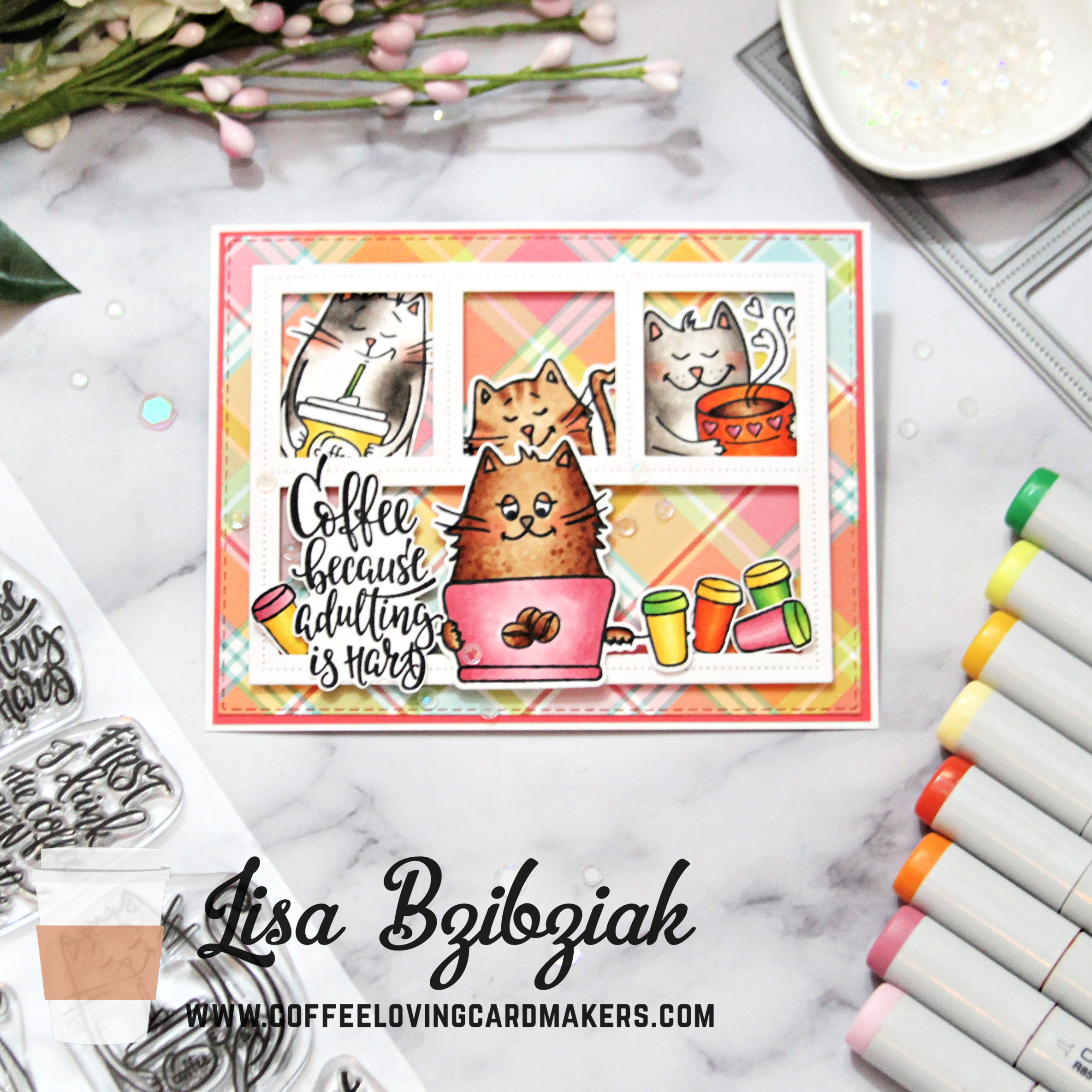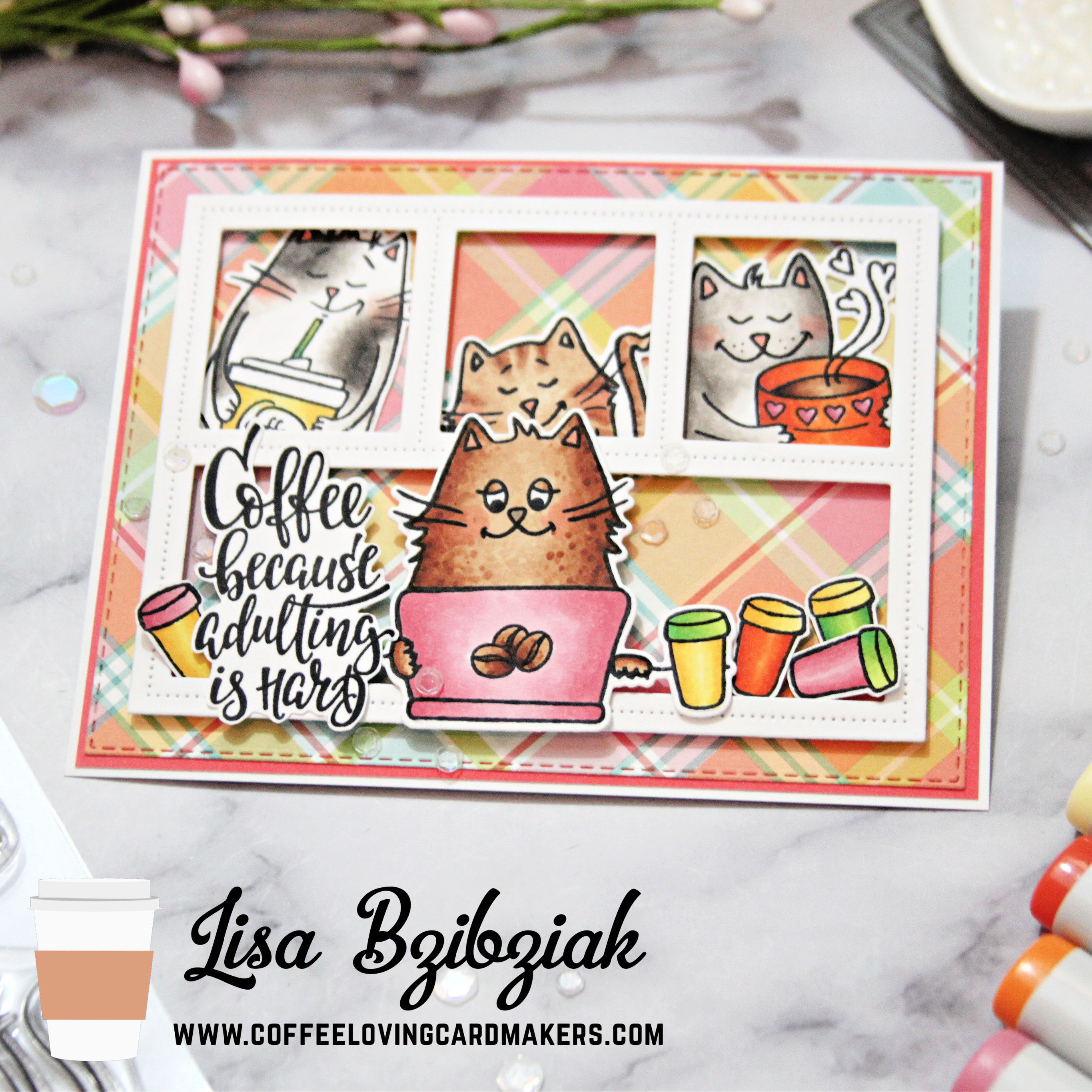 I LOVE these adorable Coffee Cats!  And guess what!  These cutie pies along with the coordinating dies are included in this month’s prize pack!