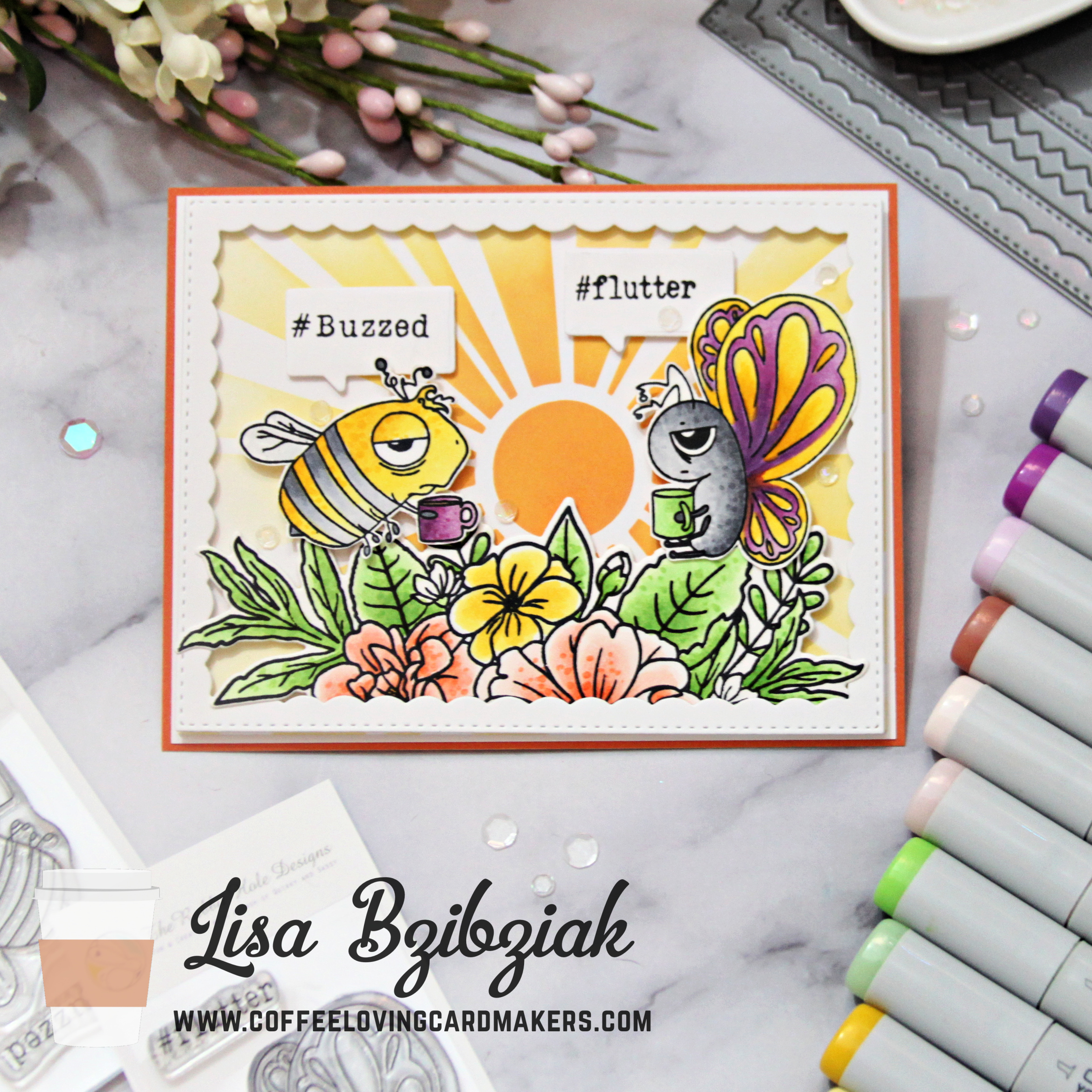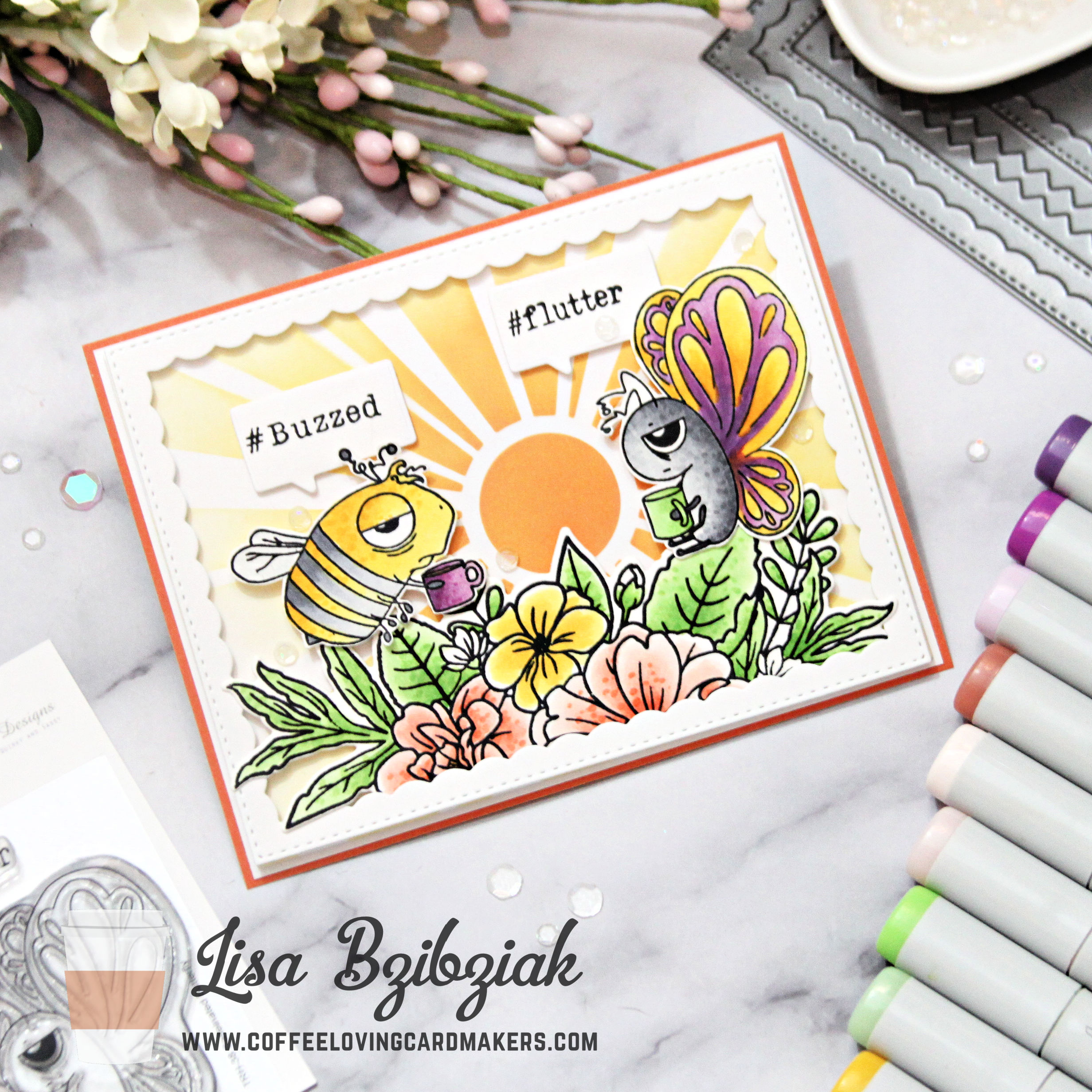 The Caffeinated series from TRHD have some of my favorite images. This time I used the Caffeinated Bee and Caffeinated Butterfly images! I decided to use them together because why wouldn’t they meet up in the morning and have a cup before they start their days!