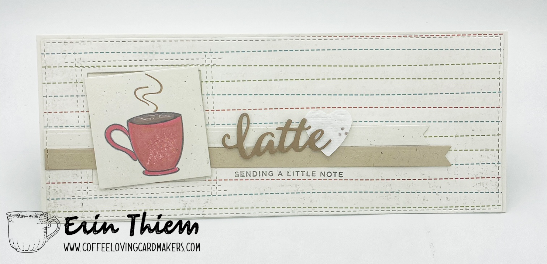Hello, Erin here for another fun filled Creative Chaos…  I got inspired by the MFT Sketch Challenge to create a slimline card.  For a person who has a rather large stash of patterned paper, I don’t use it as often as I should.  I’ve paired some MFT dies and coffee stamp with a SugarPea Designs latte die and sentiment from Simon Says.  Now I should send a little note instead of just creating ’em….