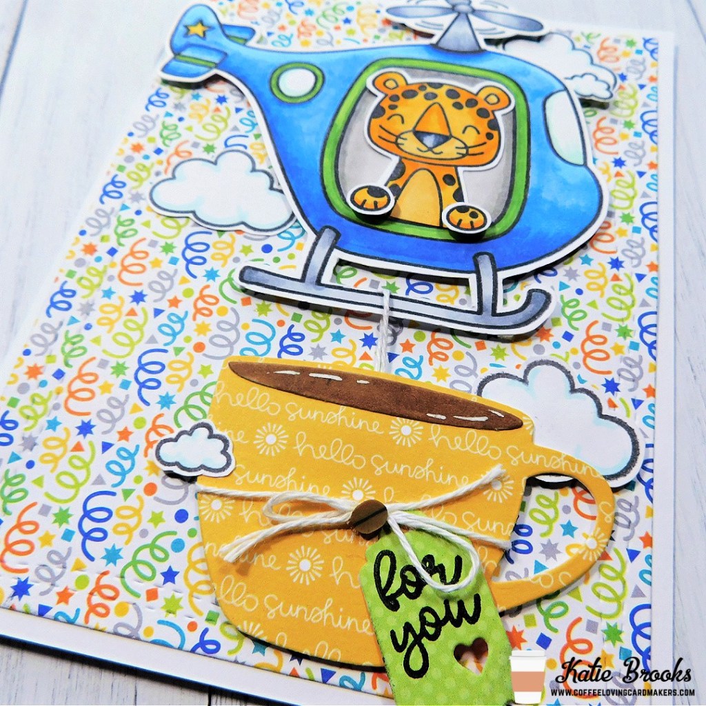 I was dying to use my new Avery Elle Peek-a-boo flight, but wasn’t quite sure how to make into a coffee card. But, low and behold, I was able to work it out making my helicopter carry a big old cup of joe!
