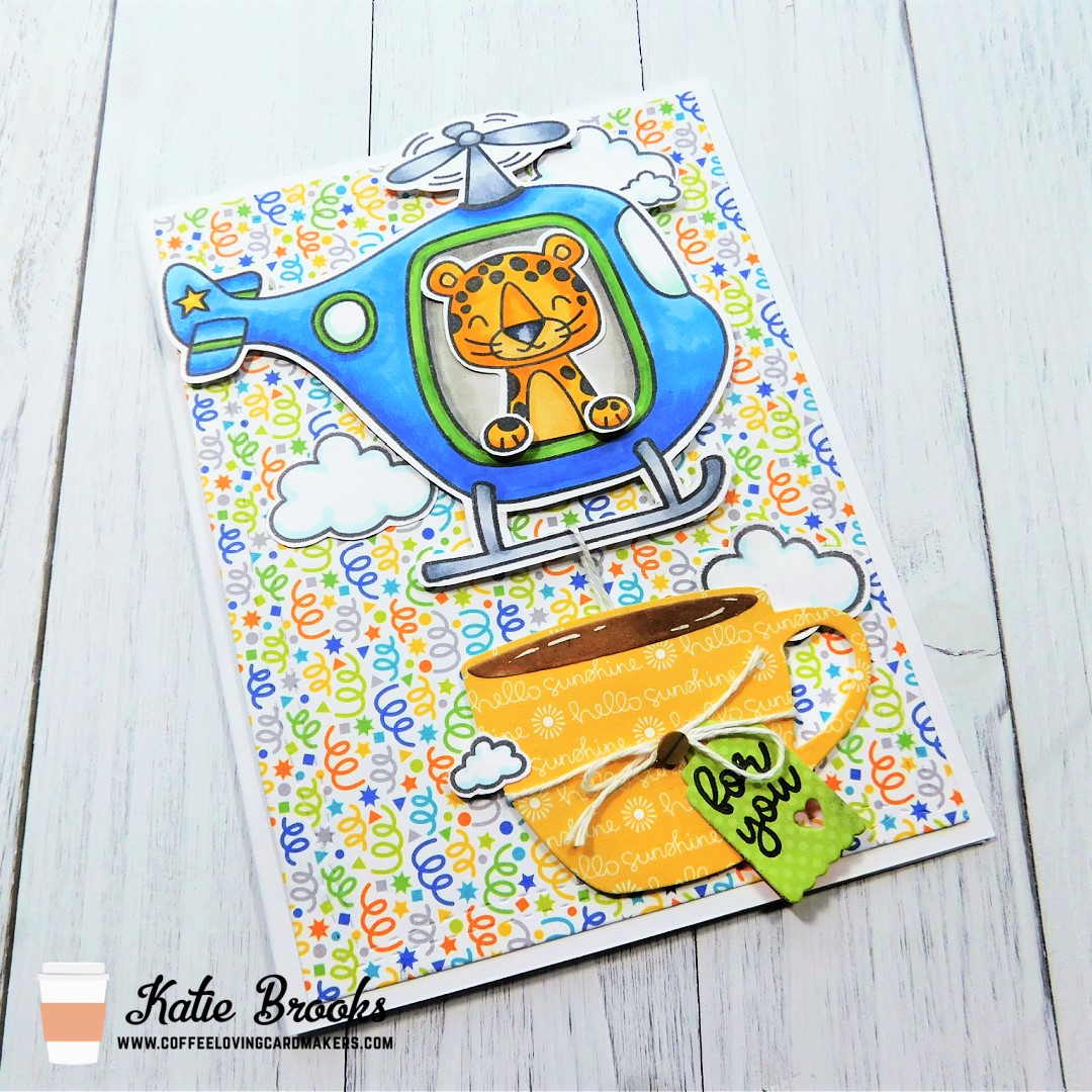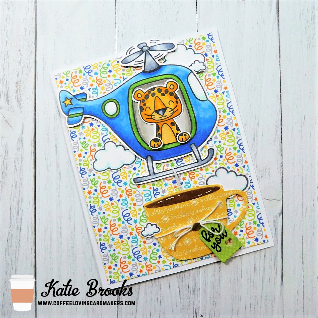 I was dying to use my new Avery Elle Peek-a-boo flight, but wasn’t quite sure how to make into a coffee card. But, low and behold, I was able to work it out making my helicopter carry a big old cup of joe!