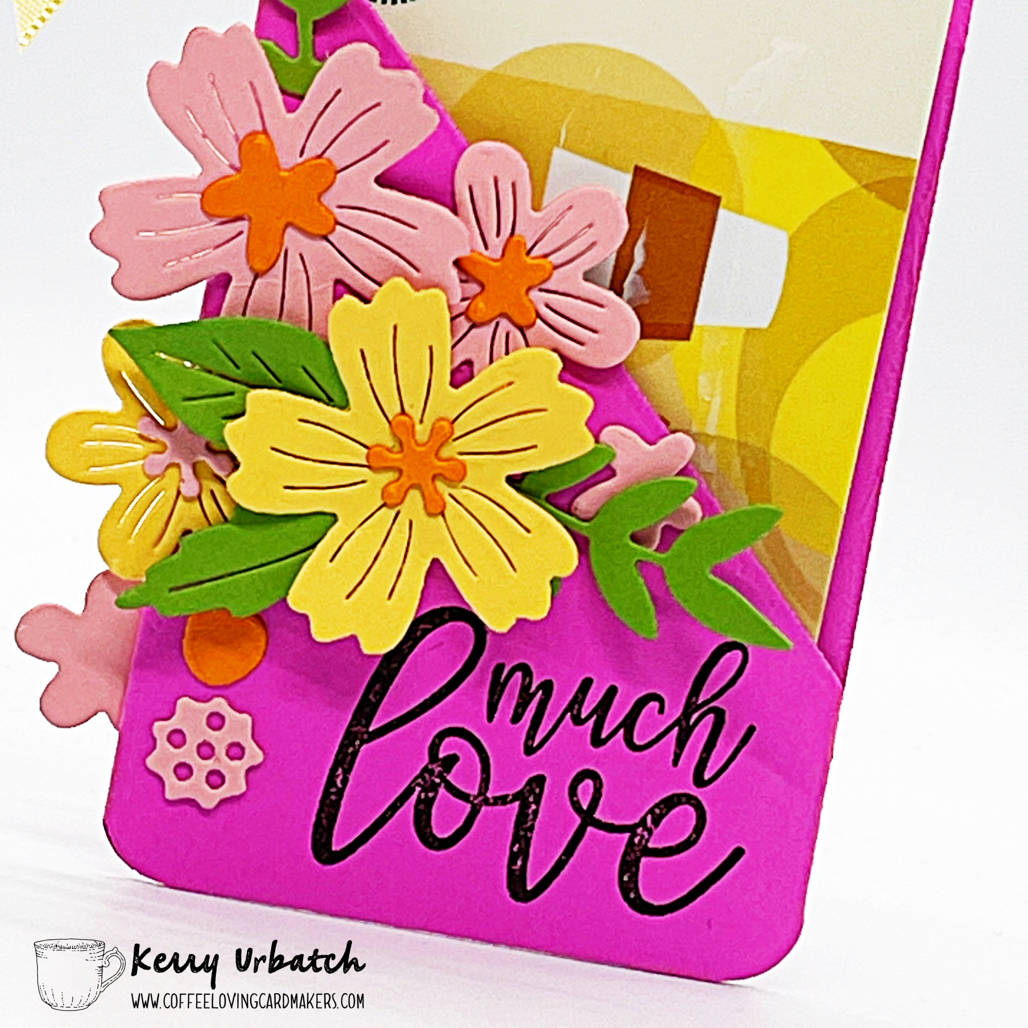 Hey there coffee loving peeps! It’s Kerry here and I’m back with another fun Sunday Sip! This week, I’m sharing a little pocket gift tag I created to tuck a little coffee treat into. This fun little pocket tag die is the perfect little die to create coffee shop gift tags. This little tag die set comes complete with a collection of posies and leafy element dies. Isn’t it fun! This SugarPea Design’s Sugar Cut die is called the Floral Pocket Tag.