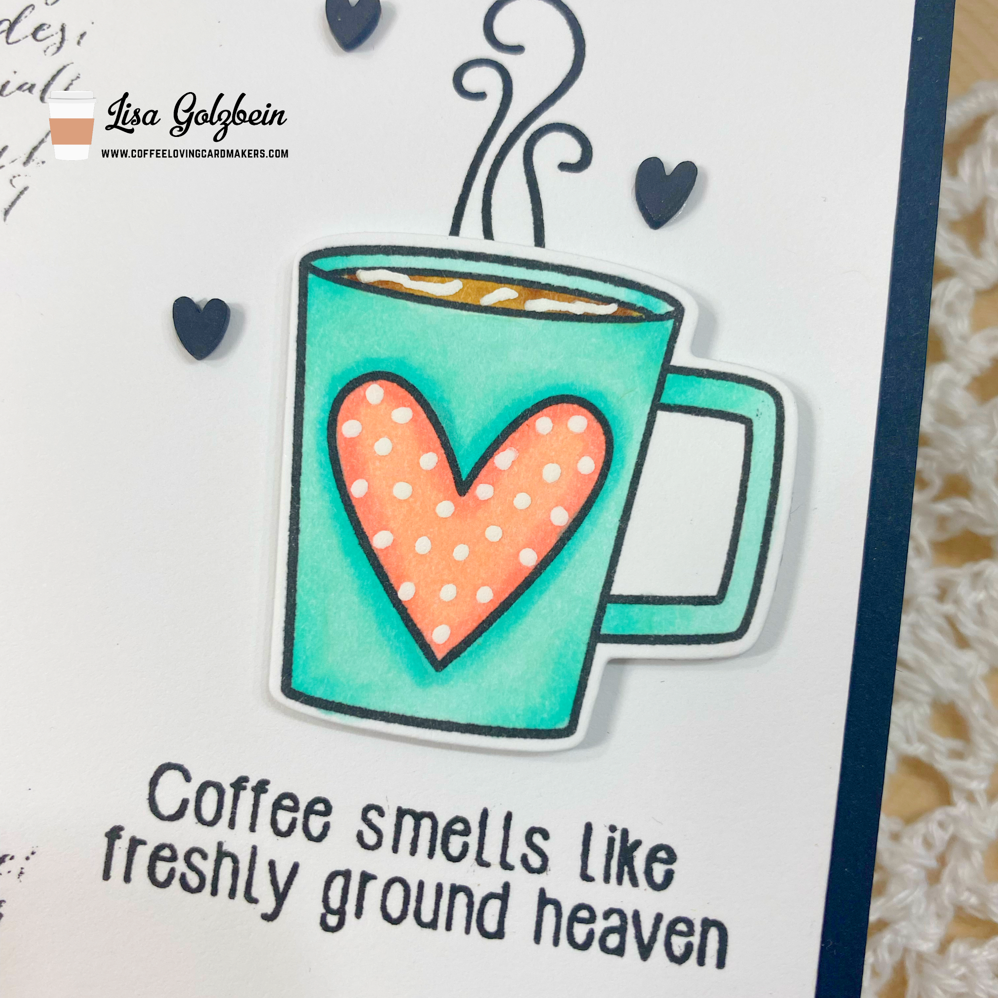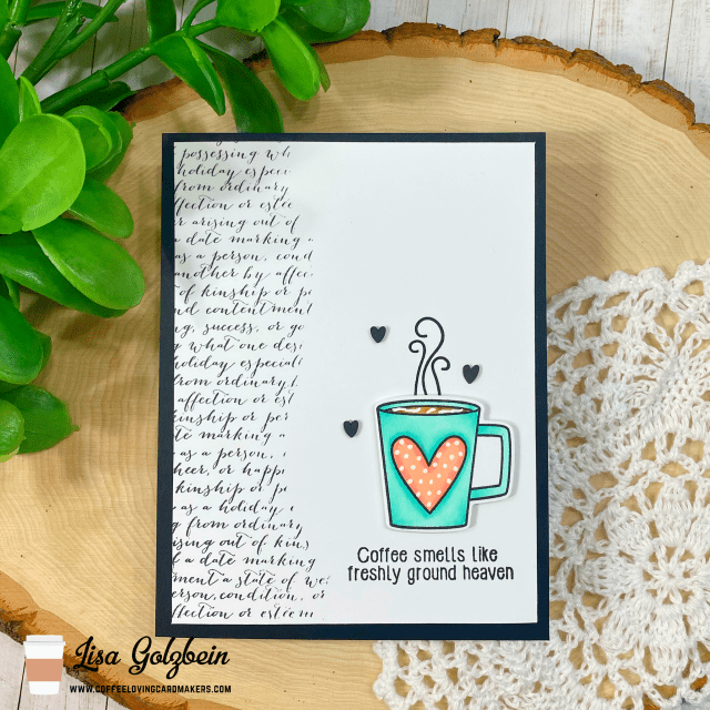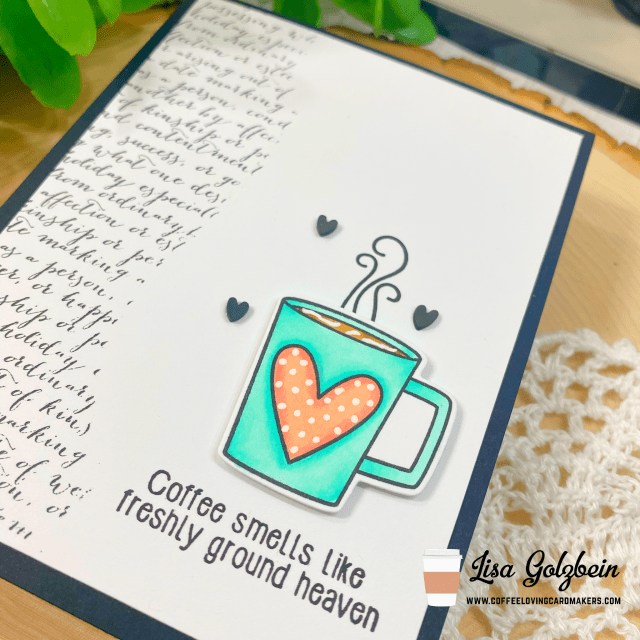 Oh, gosh, this is fabulous, Lisa!! Love how you tore the masking paper and stamped with script! The cup with sentiment is “heaven”!