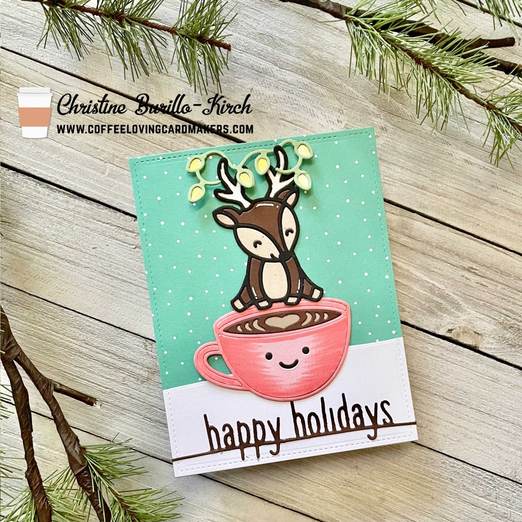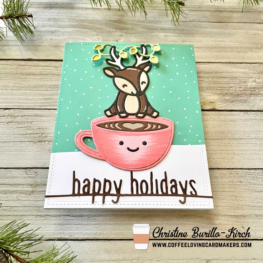 I actually copic colored the latte cup to add a little more dimension and used a white gel pen to add highlights to the deer and color the antlers white. It was a very fun and relaxing card to make and can easily be mass produced.  I hope that you like it. Thank you for stopping by today!!!