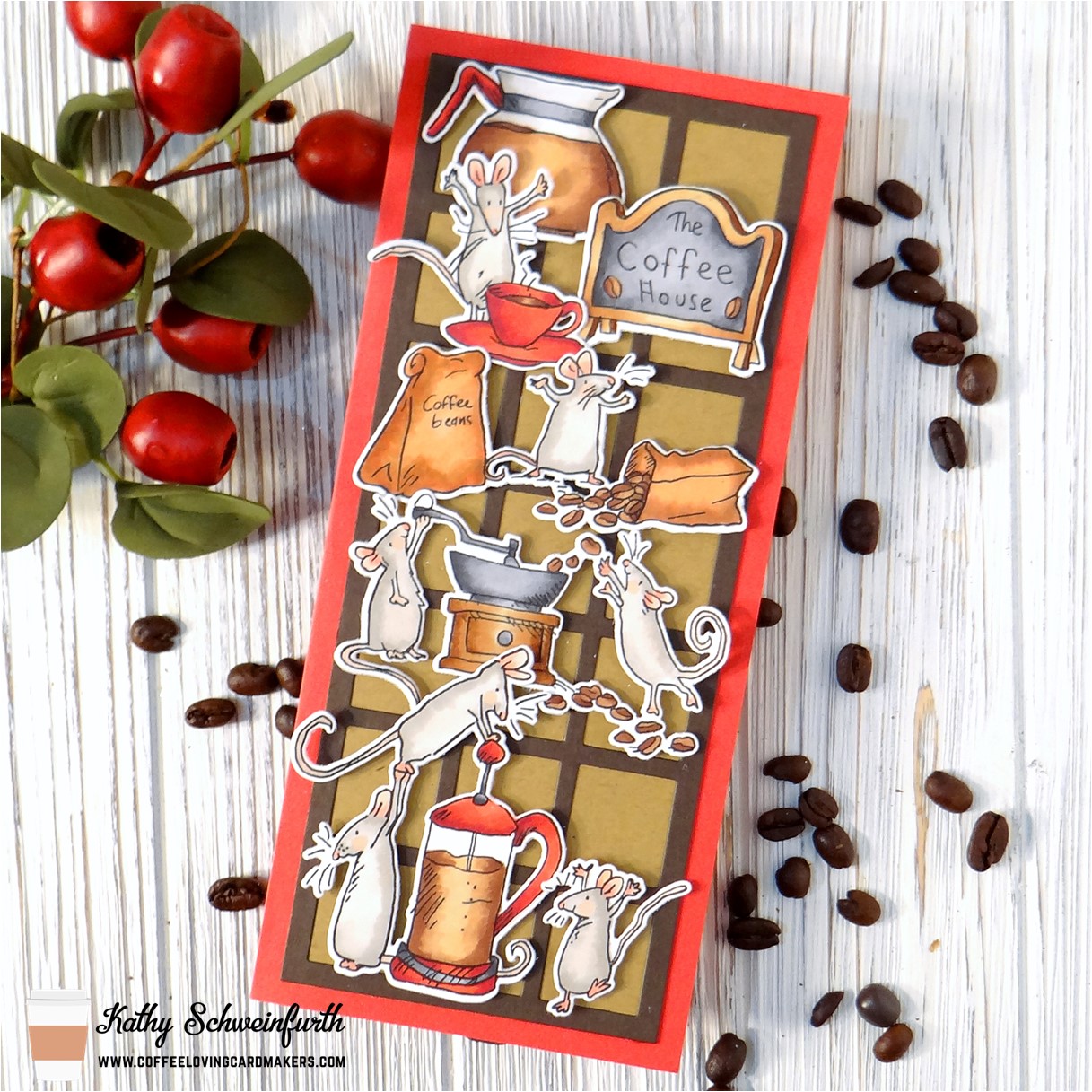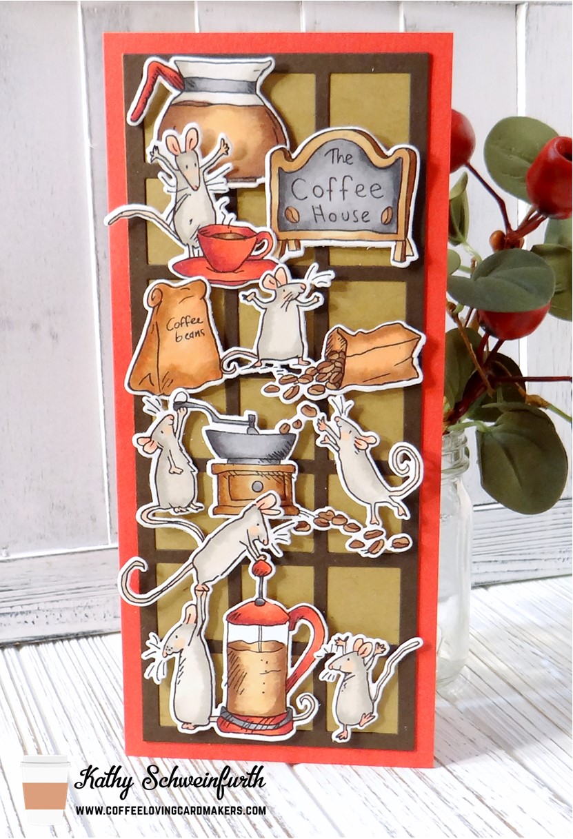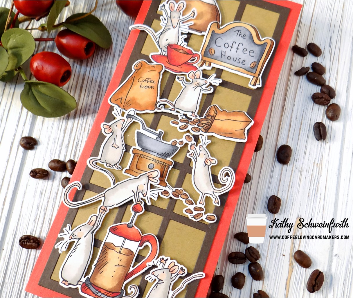 These wonderful images are from Colorado Craft Company Coffee House stamps and dies. These little mice are so adorable (and are the only mice I have any affection for!)