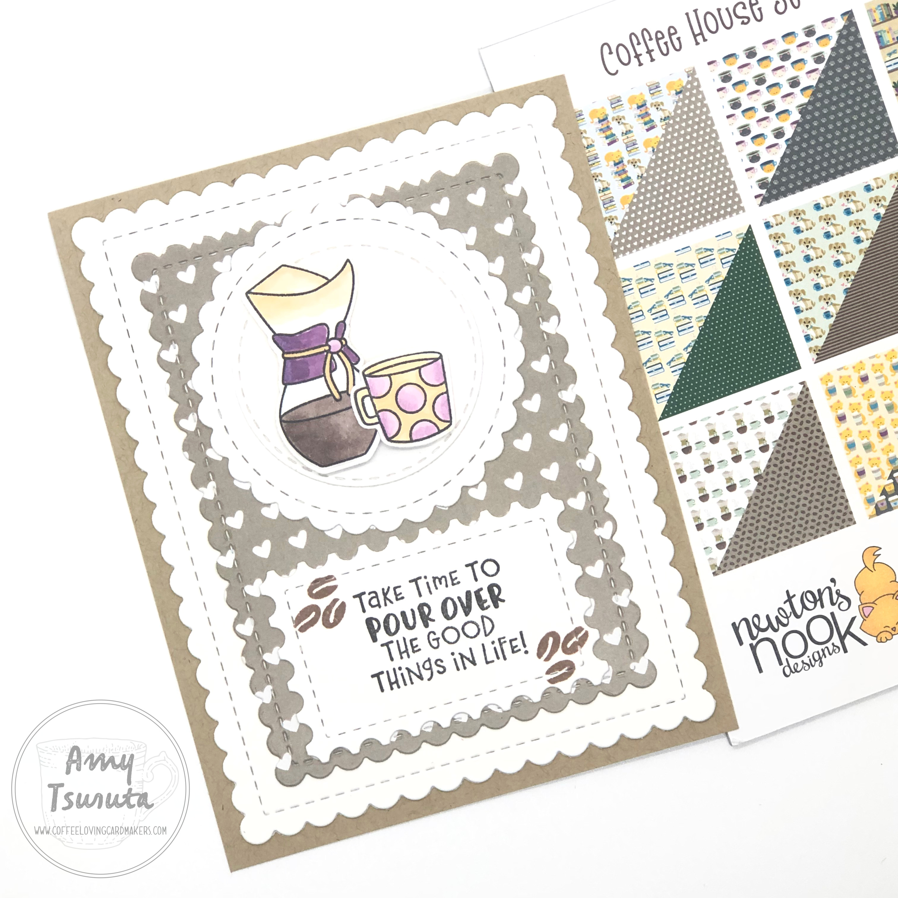 I love that Pour Over sentiment and image from the Time for Coffee set. I also combined it with the scallop dies from: