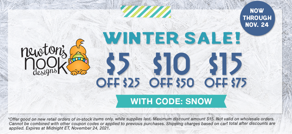 I hope that you’ve been enjoying the hop. I know that I am. Are you a member of our FB group? There is so much inspiration and fun over there. We also post all the sales that are happening, like this one for Newton’s Nook Designs: