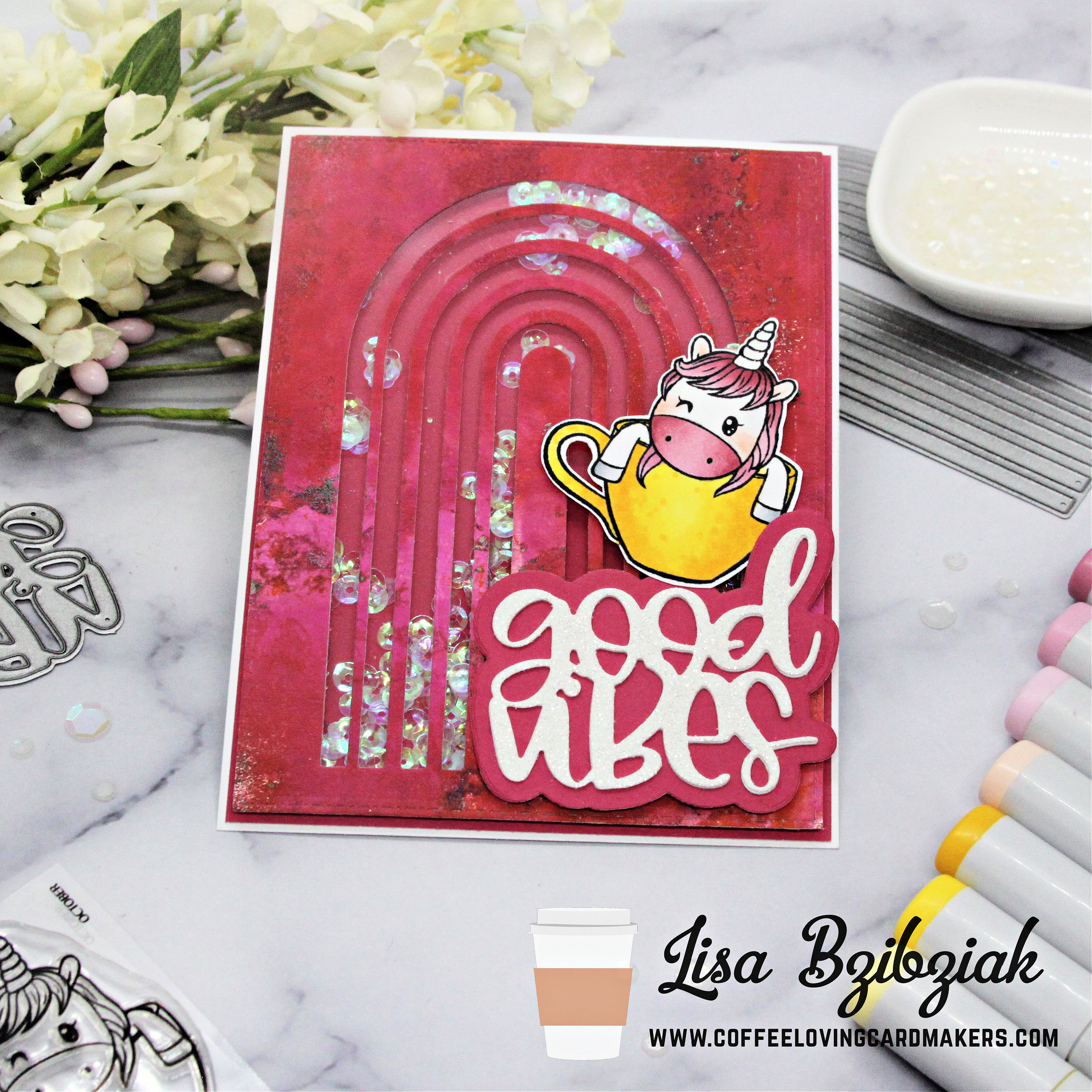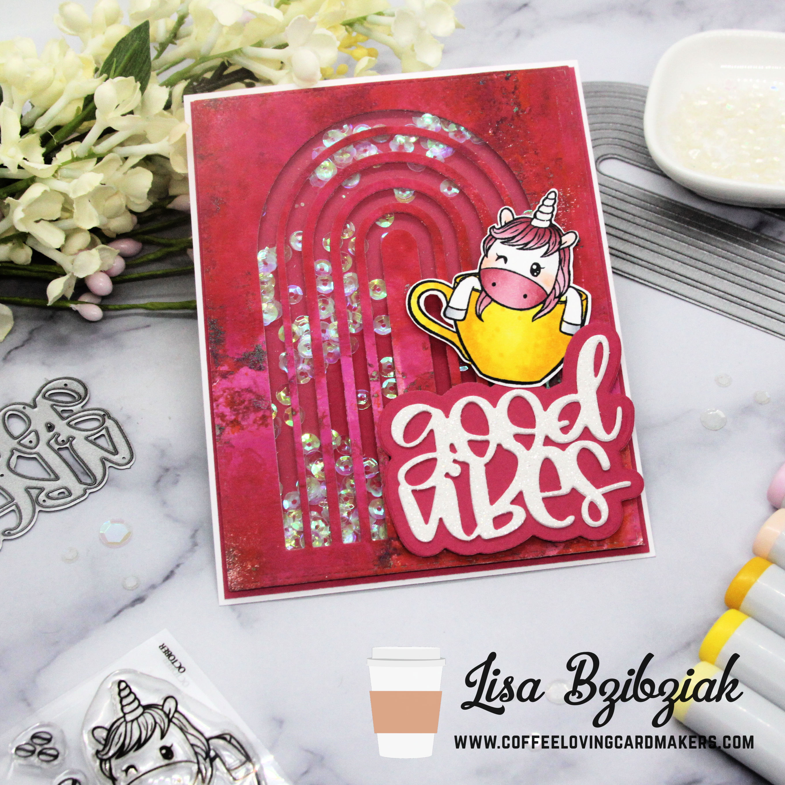 Now it’s your turn! Create something using any Sponsor’s coffee, tea or cocoa themed product! There has to be at least one of the themed products from a Sponsor on your creation.. could be a die, stamp, sentiment! Anything! Other than that you can use anything from your stash! Just mention in your post which coffee, tea or cocoa themed item you used from which sponsor! If you’re not sure who are sponsors are, you can check the list in the Coffee Loving Papercrafters Facebook Group here! (There are a lot to choose from!). Then link up here and be sure to give us a mention in your post and link back to this post. One winner will win a prize pack that includes the Coffee Unicorn I used today and a few other things!