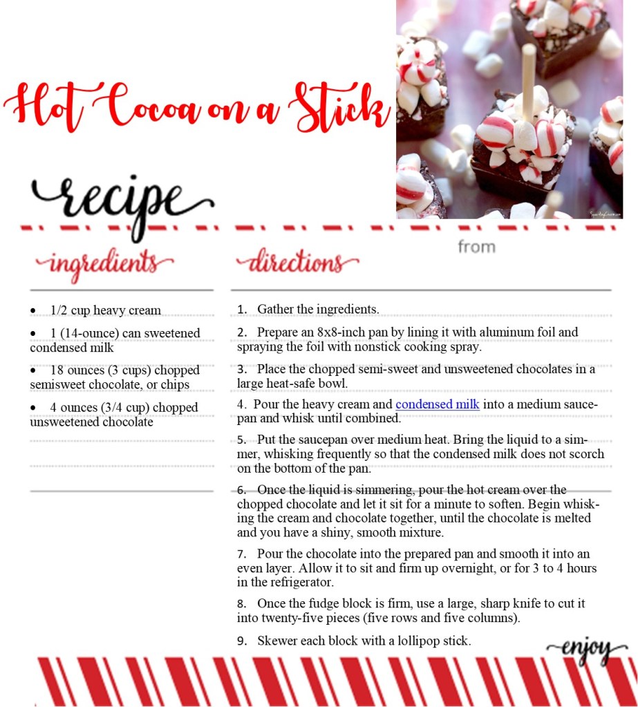 Here’s the recipe for Hot Cocoa on a Stick – Enjoy!