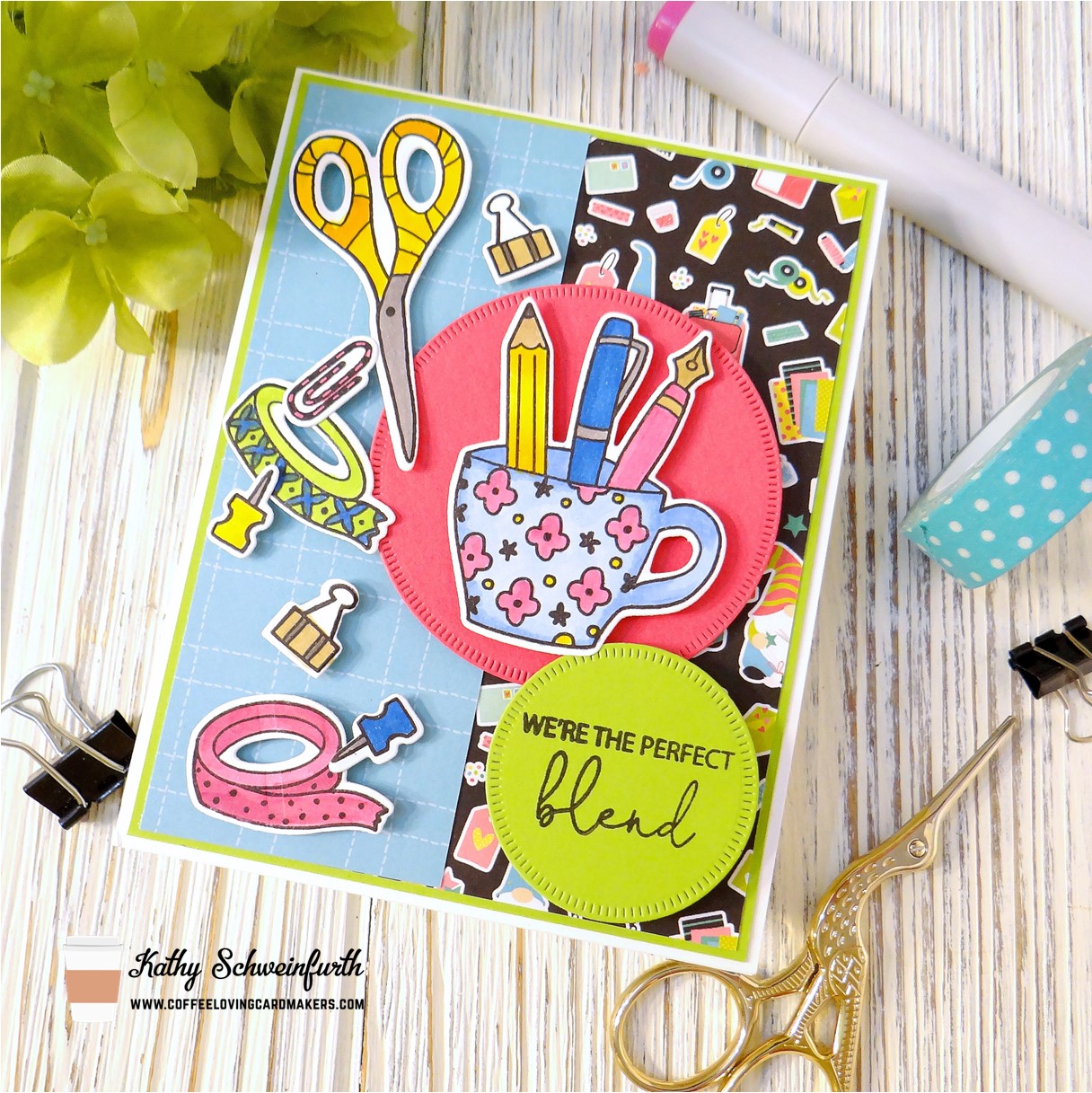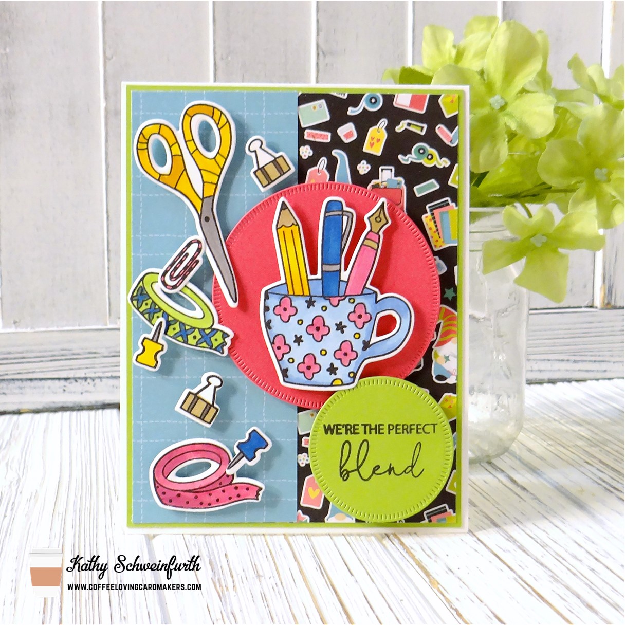 Coffee and crafting supplies ARE the perfect blend! I love all different types of coffee cups and use them for many things other than coffee – like holding craft supplies. I don’t know about you, but I could spend hours in an office supply store because so many things there can be used in crafting – right?!