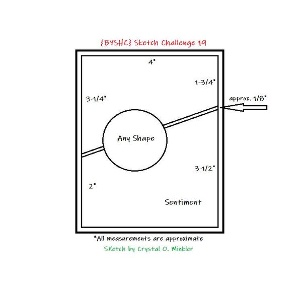 I used a fabulous sketch by Crystal Minkler over at the Build Your Stash Holiday Cardmakers on Facebook! Sketch 19 is quick and easy! I colored the cups with Copics RV91 and RV63 and used Lawn Fawn’s stitched hearts and a candy heart embossing folder from Darice. I sprayed the paper with Smooches vanilla spray for an amazing glimmer before I ran it through my Big Shot. I used sprinkles from Trinity Stamps and Twiddlers Nook. I really enjoyed making this card! Thanks for stopping by! And here’s the sketch: