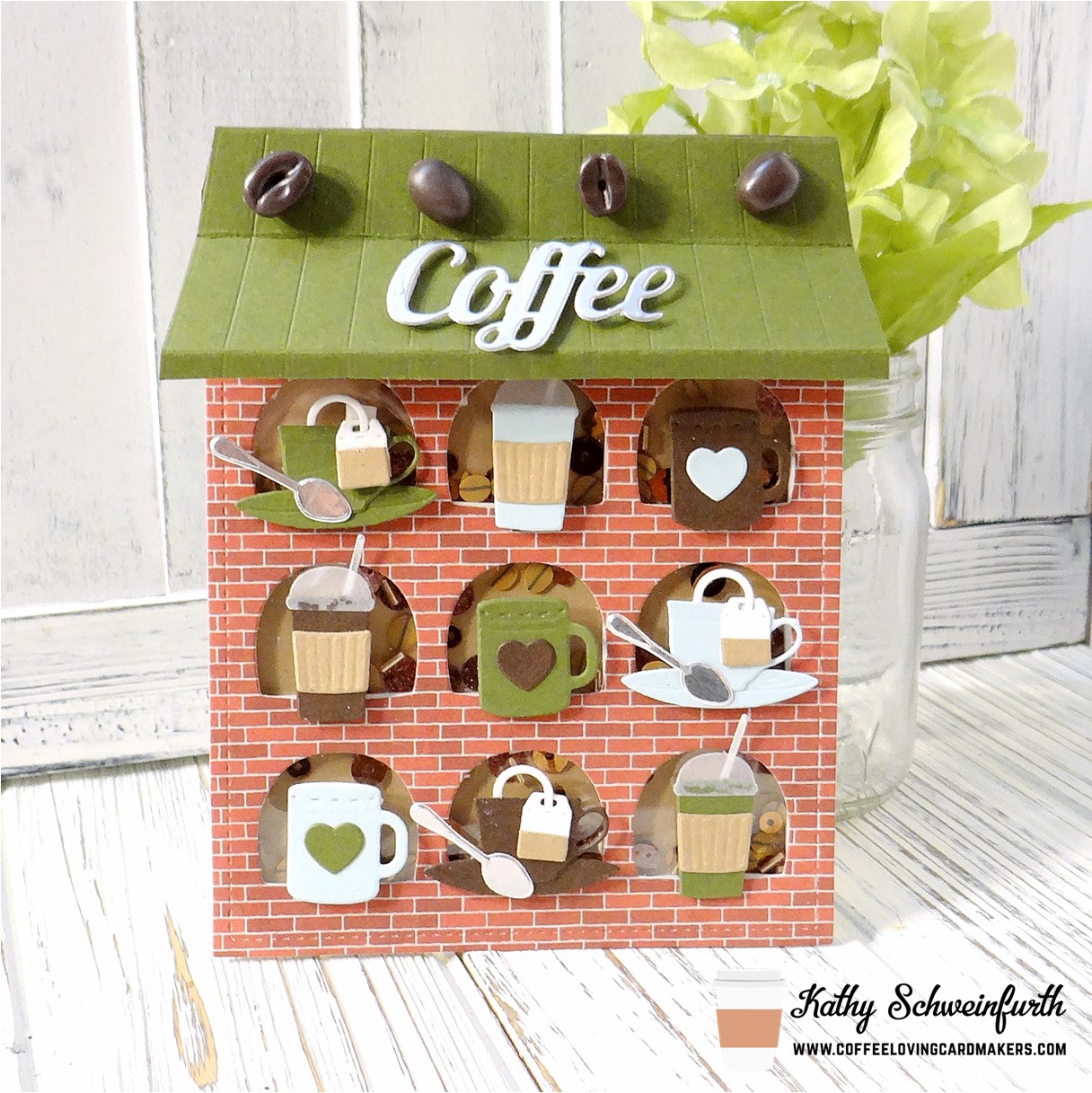 A building full of caffeinated goodness…doesn’t get too much better than this! I had so much fun creating this shaker Coffee (and Tea) Shoppe!