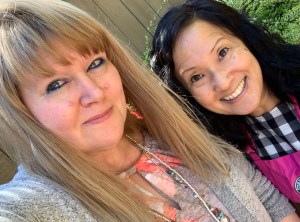 Here’s a pre-COVID photo of the two of us, she gifted me with that fun hot pink Starbucks apron!