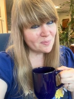 “Hello fellow coffee lovers! I’m so thrilled to be joining my friend Amy as her coffee date today!! I live in Kirkland, Washington with my family. I currently work part time in an office and part time caregiver for my mom. Other than doing crafty things, I love to mini vacations, thrift shopping, and to hang out with my Shih Tzu Oliver and hubby binge watching various shows. I have always crafted various things, and collected rubber stamps before I even knew it was a thing. One day I looked to the internet for ideas and was amazed at all of the cardmaking out there. I soon found myself immersed in cardmaking, on design teams, and eventually designing for companies. Amy and I found that we are in the same area, and as time went by, we eventually met in person at the Puyallup Scrap and Stamp Expo in 2013. Over the years we have stayed in contact and I am so truly blessed to be a part of a small local crafty group with her and be able meet up in person from time to time. I have slowed things way down and currently am occasionally designing for myself, and am finding it a true pleasure again. Amy is a light of inspiration, love, and immense support in the crafty universe! I am very thankful to have been invited to be her Coffee Date! Muah!”