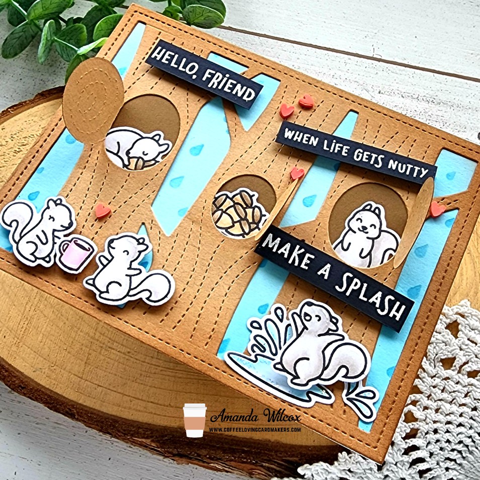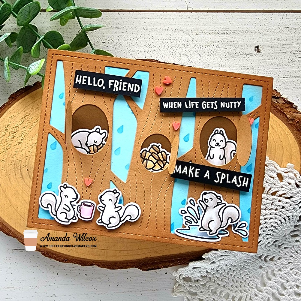 Happy Tuesday everyone! It’s time for Tuesday Tea with Twiddler’s Nook again. Today I’ve got a fun little scene card to share featuring the adorable Lawn Fawn squirrels from a couple of sets and the lift the flap tree backdrop die to help set the scene. I’m also playing along with the new Lawn Fawnatics challenge that just started – build a scene.