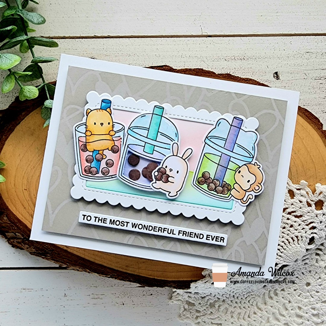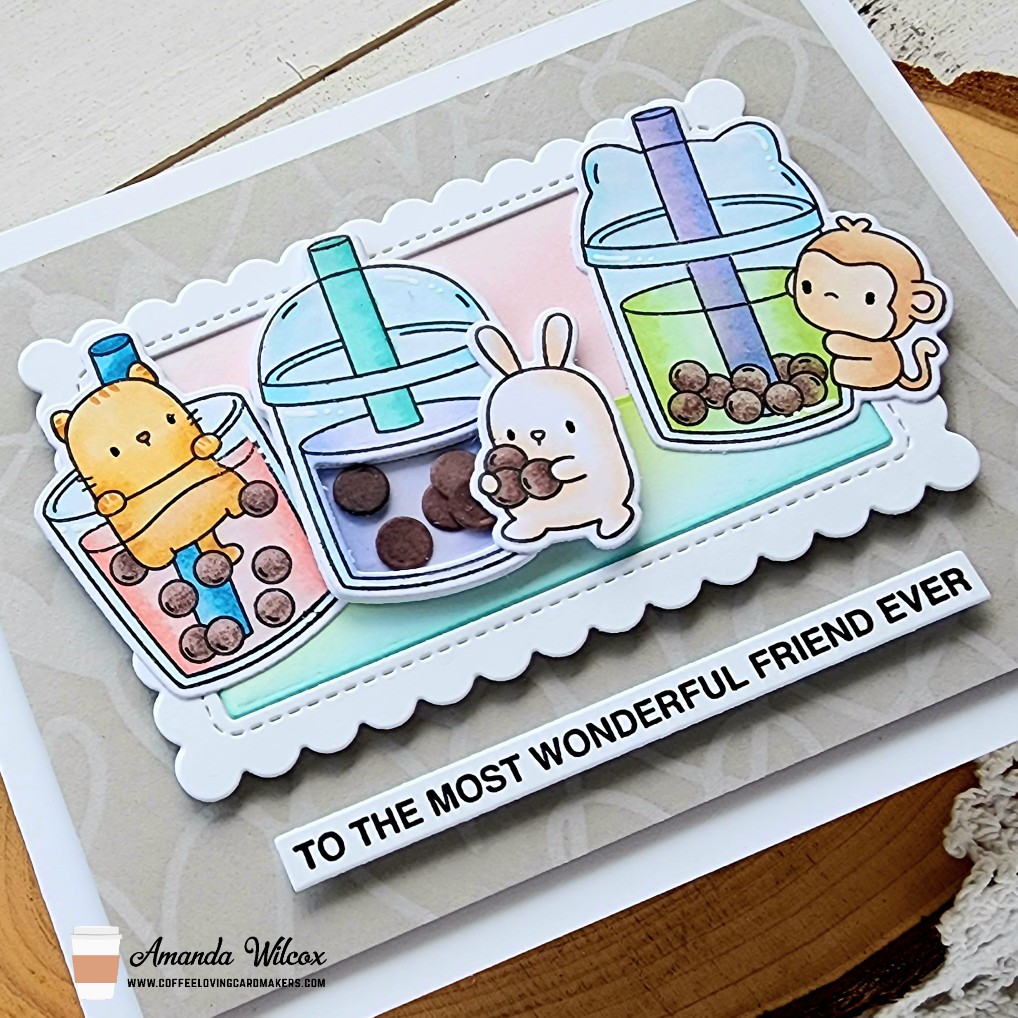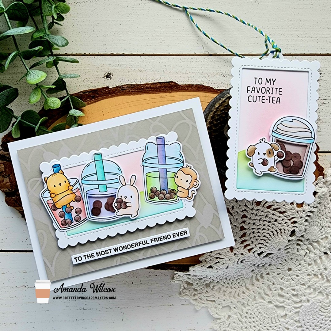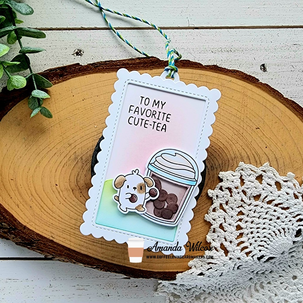 Hey crafty friends! It’s Amanda from Twiddler’s Nook for Tuesday Tea once again! Grab a cuppa and let’s craft! Today I’m sharing a card and tag combo featuring the Mama Elephant Boba Tea stamp set which you can also create mini boba shakers with! It’s so fun!