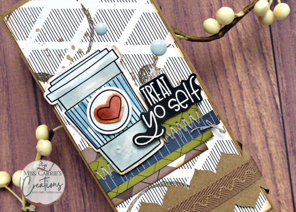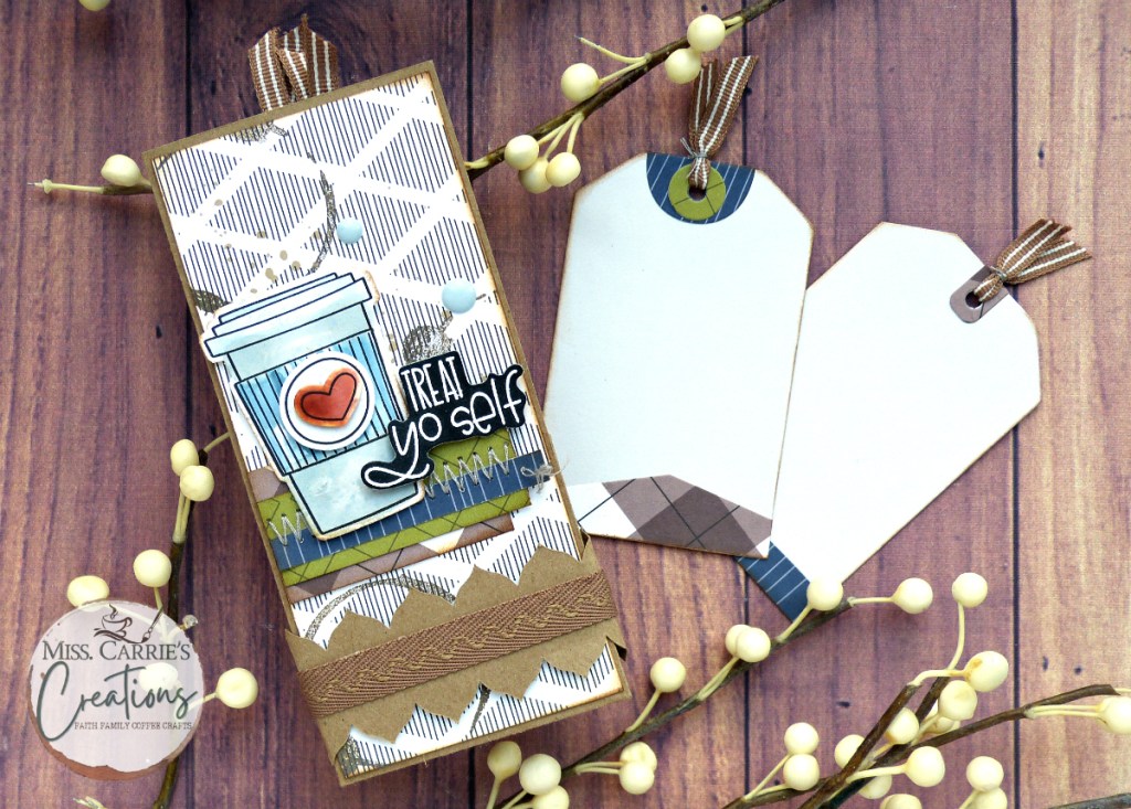 Hello, my coffee-loving friends! I am excited to share another project with you. In the states Father’s Day is celebrated in June, so I decided to share a card with a more masculine feel. This is a smaller slimline with pockets that you can fill with sweet sentiments, treats, or gift cards.