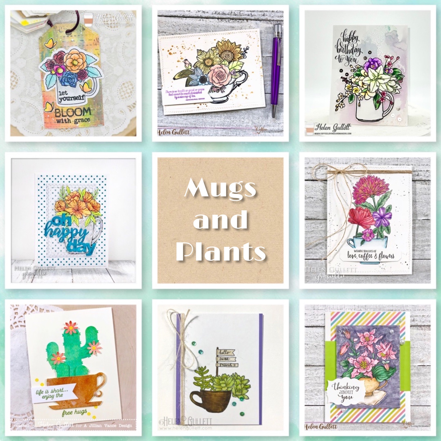 These are the cards I made inspired by the gardening idea using the coffee mugs and tea cups. I hope they will spark some ideas for you to make projects either cards or tags or even gardening!